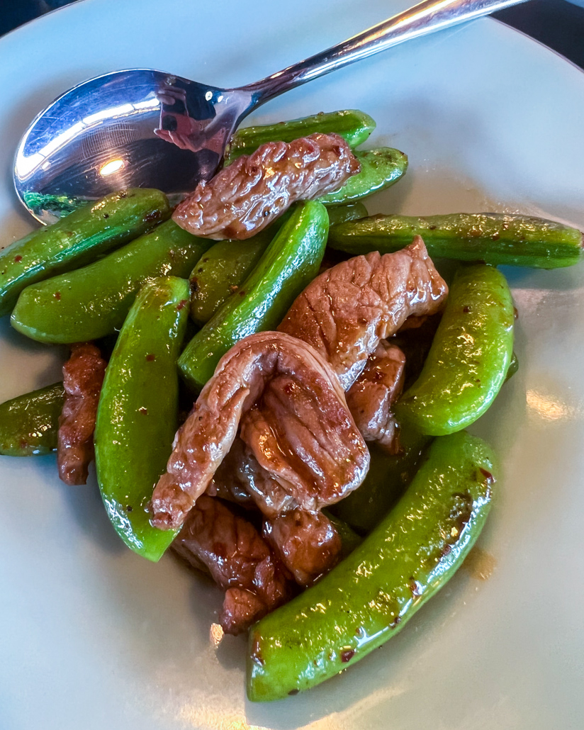 Die kantonesische Speisekarte von Ling Ling basiert auf Hakkasans Signatur-Gerichten, die aus lokalen Zutaten zubereitet werden. Wir wählten als Vorspeise den King Krab Salad sowie die LingLing premium steamed dim sum basket. Als Hauptgericht Scallops mit Spargel und schwarzem Trüffel sowie dem Spicy Wagyu mit Szechuan Mala Sauce. Als Beilagen wählten wir Reis und Spargel. Es war alles vorzüglich, nur das Wagyu war für uns sehr zäh. Aus Japan sind wir anderes und eine bessere Qualität gewohnt. Der Preis war dafür absolut nicht gerechtfertigt.