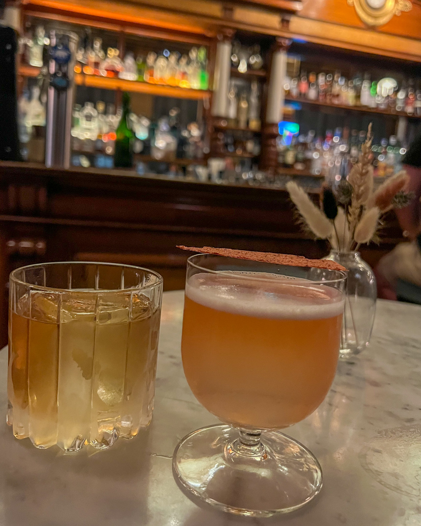Je nach Wochentag gibt es unterschiedliche Räume, die geöffnet sind. Bei uns war es nur der wunderschöne Innenhof mit Cider-Bar und Restaurant und nebenan eben die Bar. Wir haben direkt einen Platz an der Bar ausgewählt und dem Barkeeper gleich die Frage gestellt, was er uns empfehlen kann.
