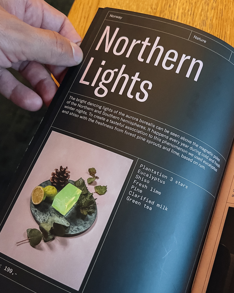 Barkeeper in weißen Laborkitteln, wie sie früher mein Chemie- und Biologie-Lehrer trug, empfangen dich mit einer individuell gestalteten Cocktail-Karte. Der Vodka, Gin und Aquavit entstammt dabei der hauseigenen Brennerei.