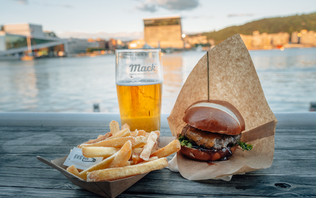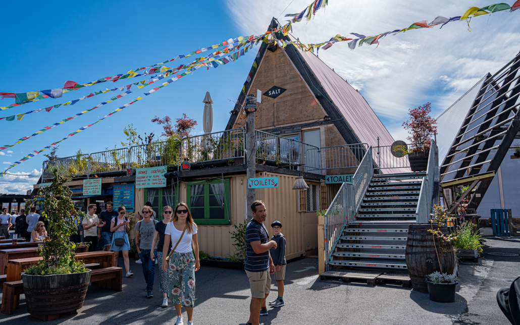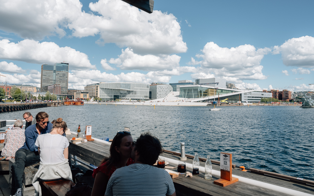 Im SALT waren wir mehrfach. Denn bei einem Burger am Anleger Langkaia mit Ausblick auf die schönsten Gebäude in Oslo mit der Oper, dem Munch Museum und der Deichmann Bibliothek in warmen Sommernächten gibt es kaum einen vergleichbaren Ort. Vor unserem Saunabesuch waren wir für ein Bier mit Aussicht nochmals hier, um die nette Atmosphäre im aus Treibholz gebauten Café bzw. Biergarten zu genießen.