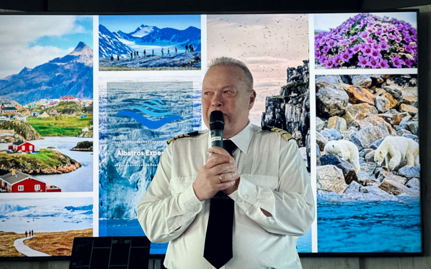 Gegen 6:30 Uhr bestieg ich das Laufband, genehmigte mir ein kurzes Frühstück und lernte im Anschluss das gesamte Albatros-Team kennen – darunter auch viele deutsche Expeditions-Guides.