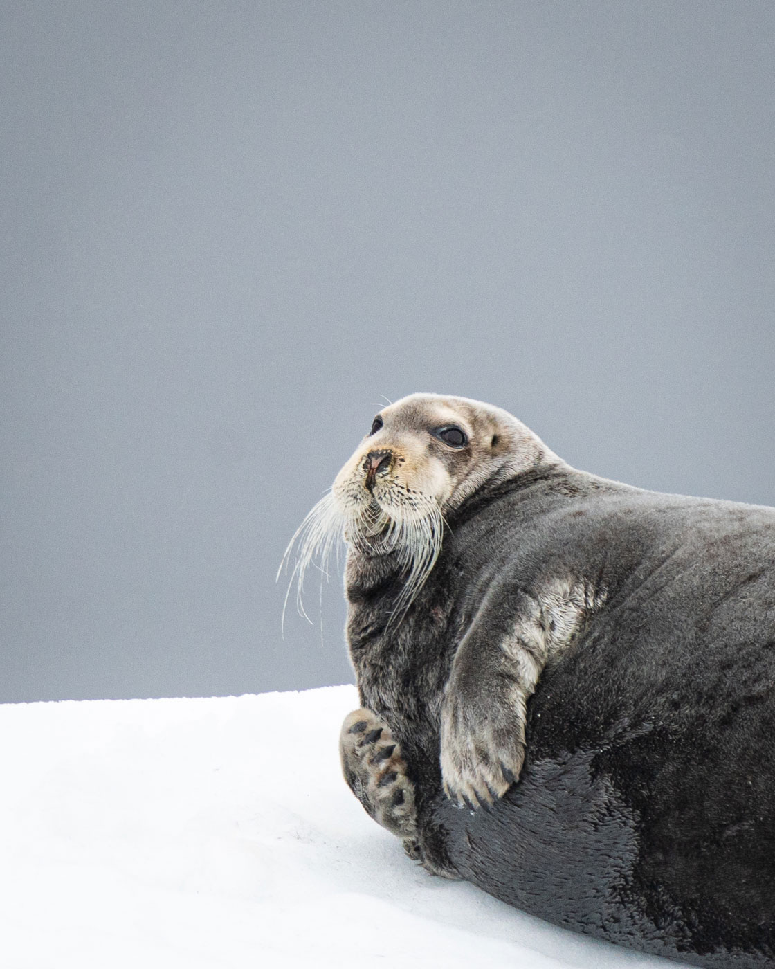 Wir passierten einige Seerobben, die uns auf Eisschollen mit verwunderten Blicken musterten.