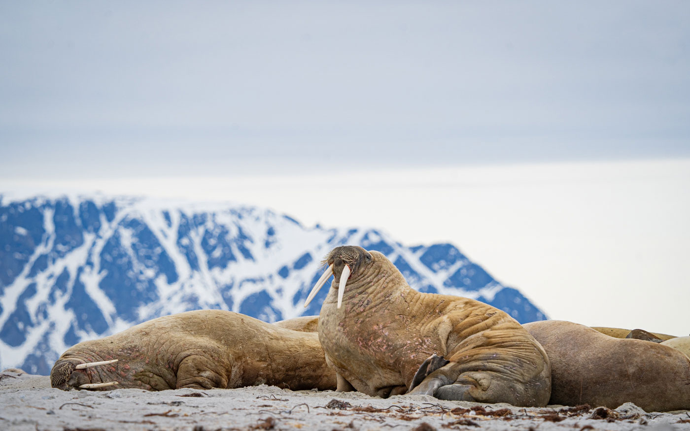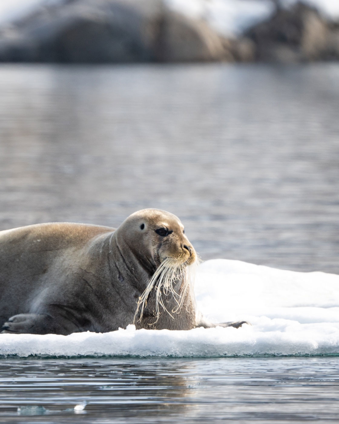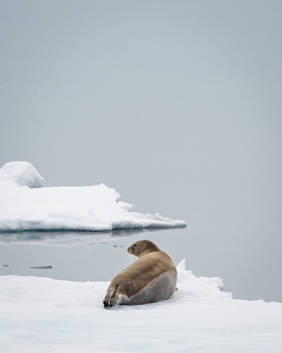 Hervorragend abzulichten dagegen ist die unfassbar vielfältige Tierwelt, die wir bereits ab Tag 1 zu sehen bekamen. Einsam vor sich her dösende Eisbären, gemächliche Walrosse und neugierige Bartrobben überraschten uns immer wieder aufs Neue bei unseren Ausflügen mit den Zodiac-Schlauchbooten oder – noch viel einfacher – direkt vom Deck des Expeditionsschiffes Ocean Albatros.
