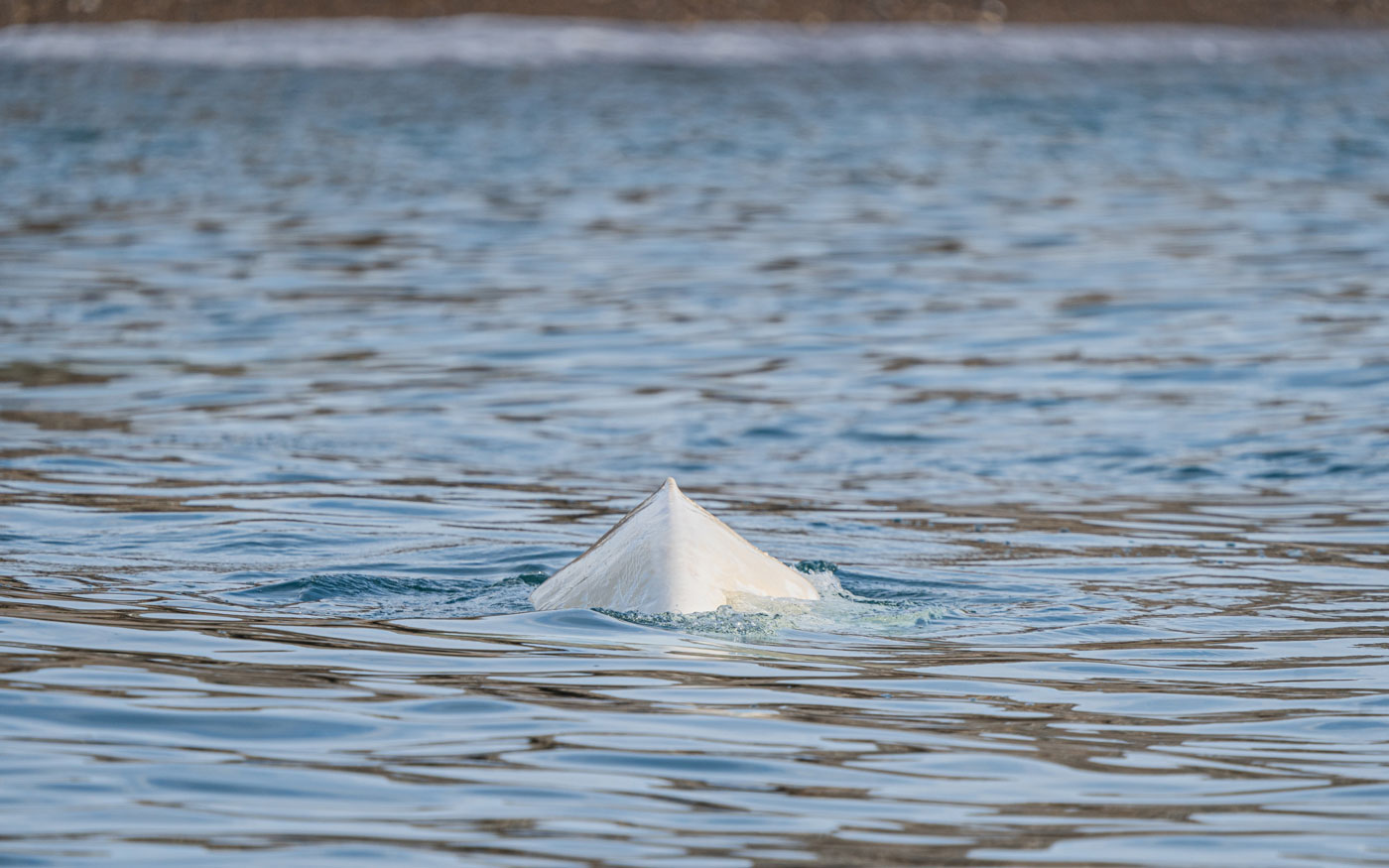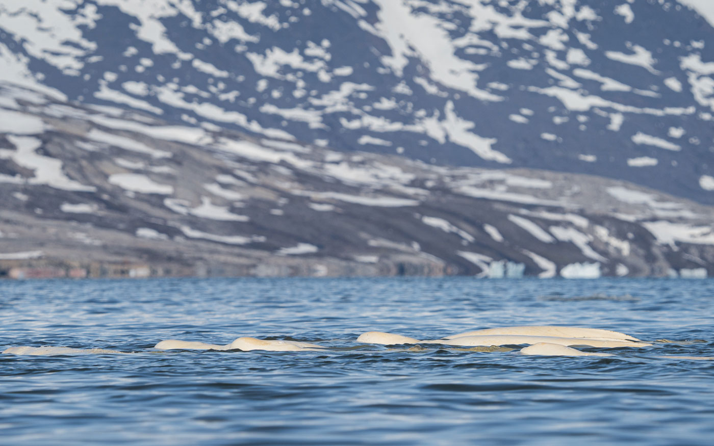 Dann fing es erneut raus mit den Zodiacs, auf die Suche nach ebenjenen kleinen niedlichen Vögeln mit den bunten Schnauzen um das Fjortende "Julibukta". Wir sollten jedoch erneut vom Glück gesegnet sein, denn: Nur wenige hundert Meter von unserem Schiff entfernt tummelten sich unzählige Belugawale! Und sie schienen gar nicht wegzuwollen, sondern umkreisten verspielt wie neugierig unsere kleinen Boote. Faszinierend!