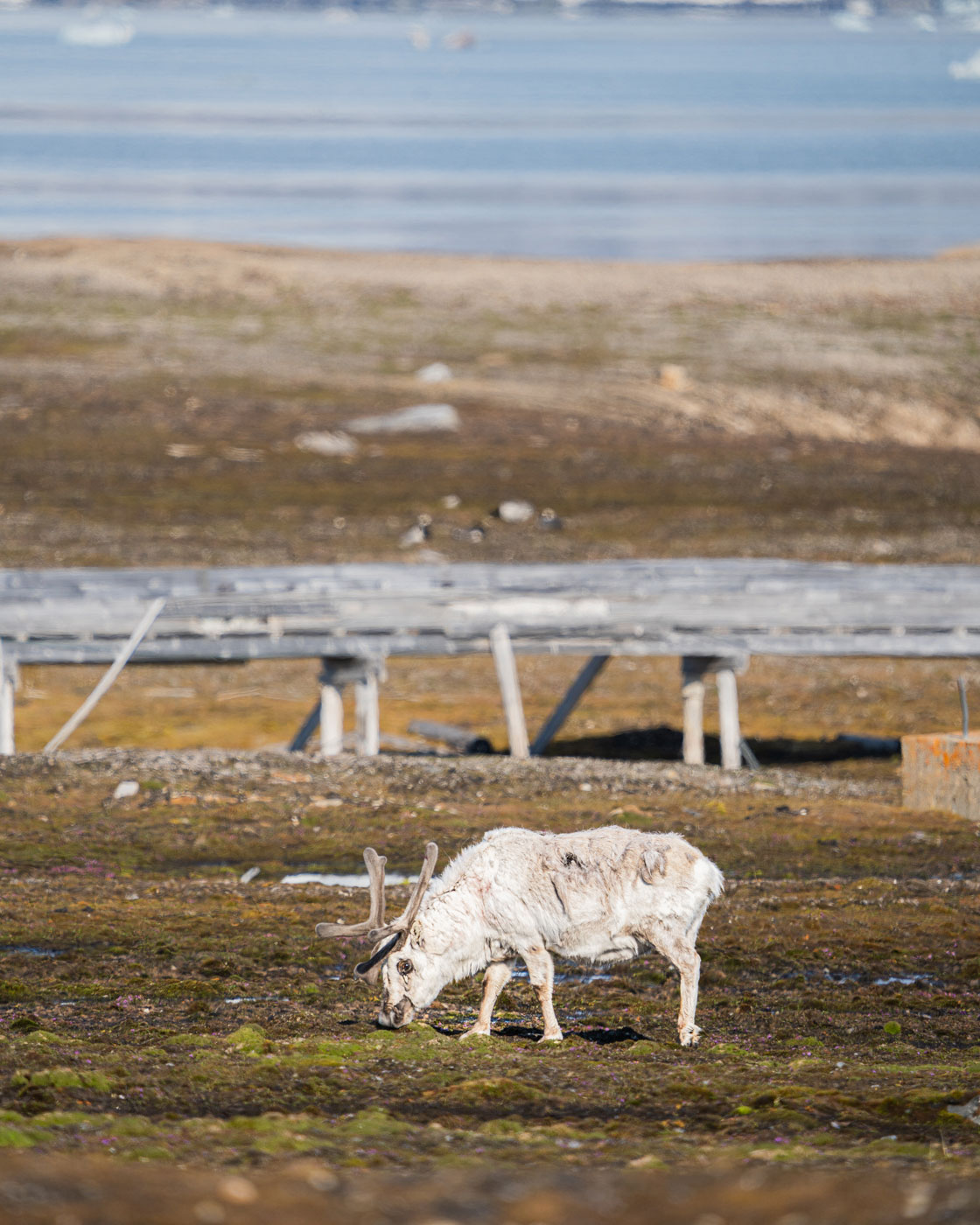 Tiere gab es hier indes nicht zu sehen. Bis auf ein (zu) weit entferntes Spitzbergen-Rentier und ein paar Möwen waren es nur wir Reisenden, die diesem Örtchen Fleisch und Blut besteuerten.