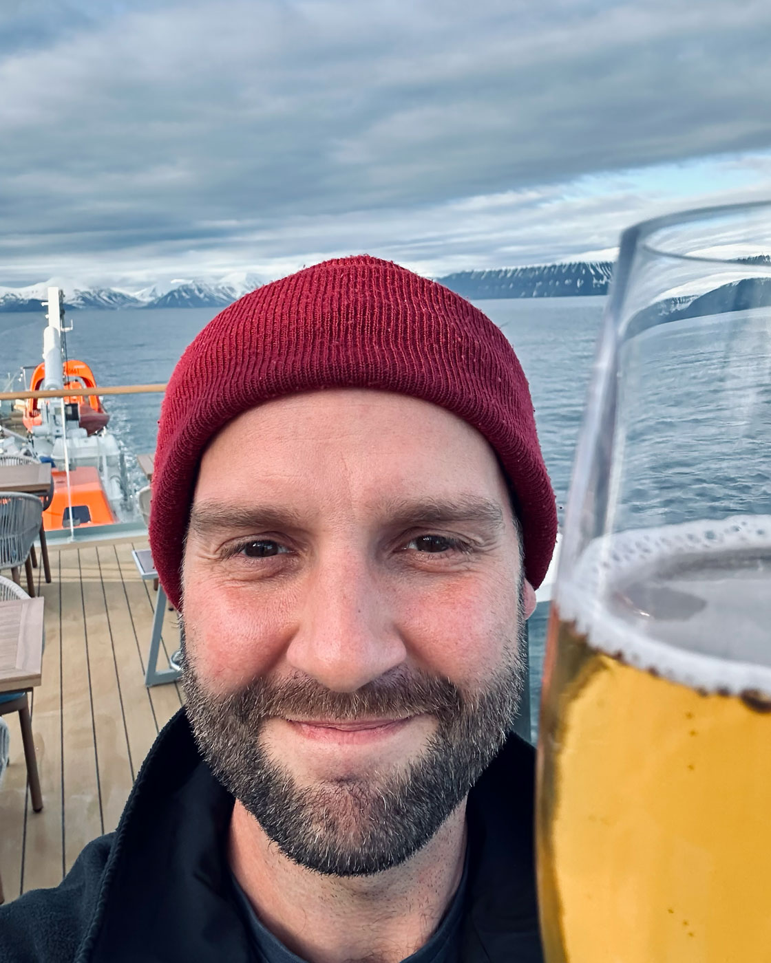 Kevin Closs, ein Expeditionsmitglied mit Fokus auf Historie, versüßte uns den Abend mit Gitarre und Gesang, bevor es nach einigen Drinks in's Bett ging. Seine Songs handelten von der arktischen Kälte und der umgebenen Tierwelt – hier könnt ihr reinhören!