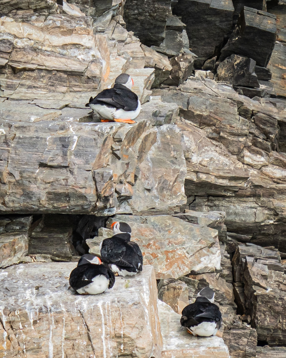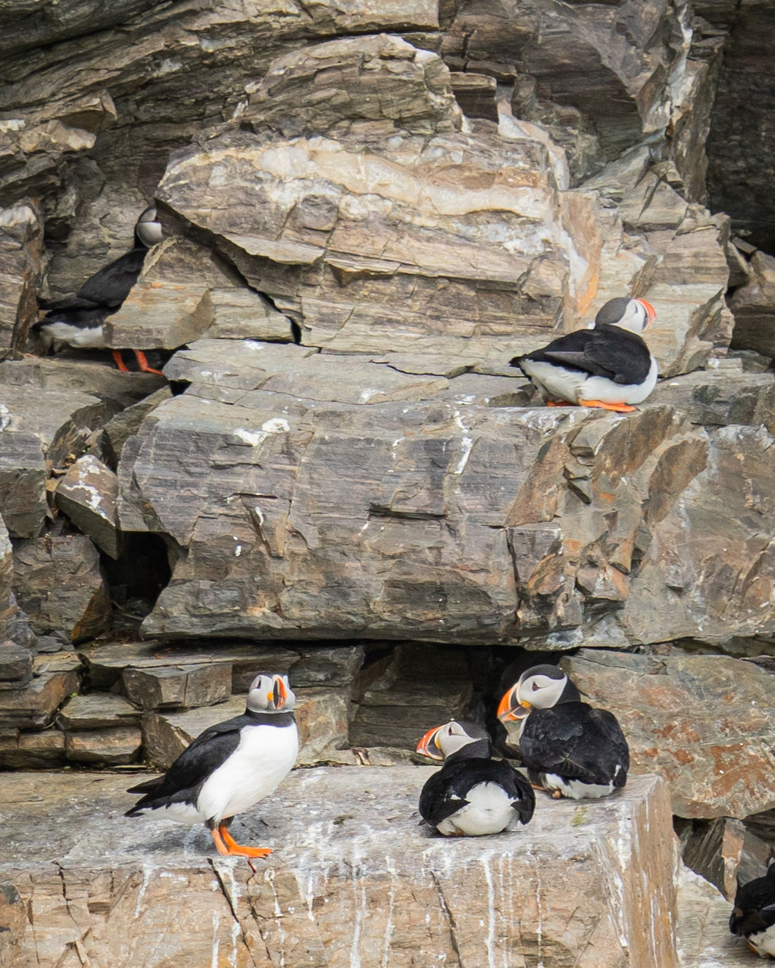 Danach sahen wir dann tatsächlich auch noch einige Papageientaucher, die sich bei erneut sonnigstem Wetter in den Felsen für uns drapierten, obgleich uns die englische Bezeichnung "Puffins" viel passender erscheint (die Puffin-Babys heißen übrigens "Pufflings"🥰)