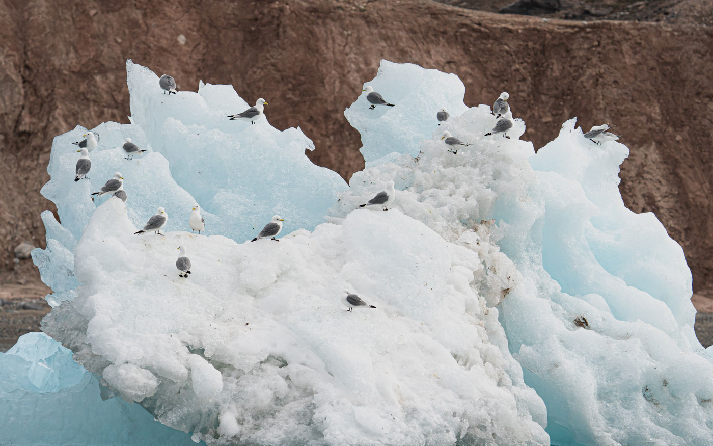 Am heutigen Morgen ging es mit den Zodiacs nach „Ossian Sarsfjellet“, einem kleinen Strandabschnitt, an dem unzählige Möwen ihre Nester in die Felsen bauten.