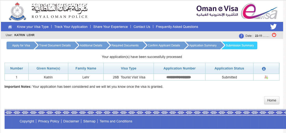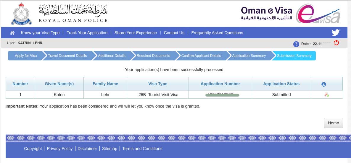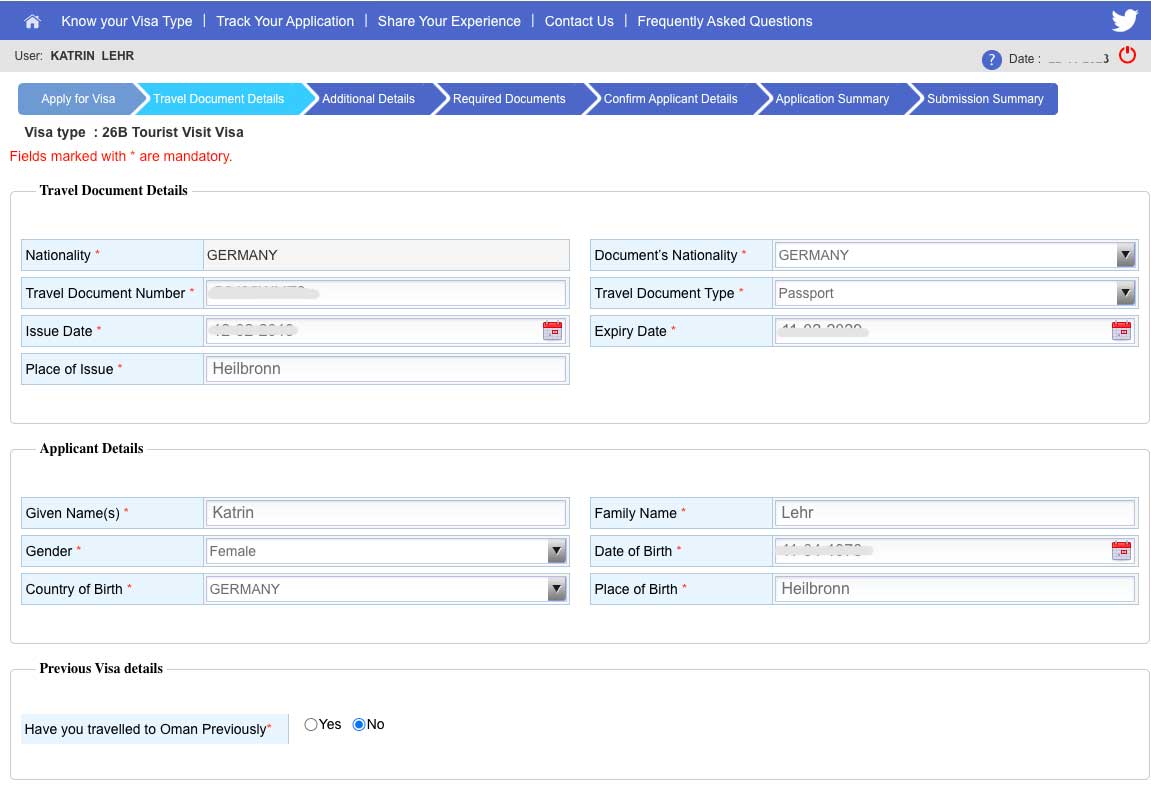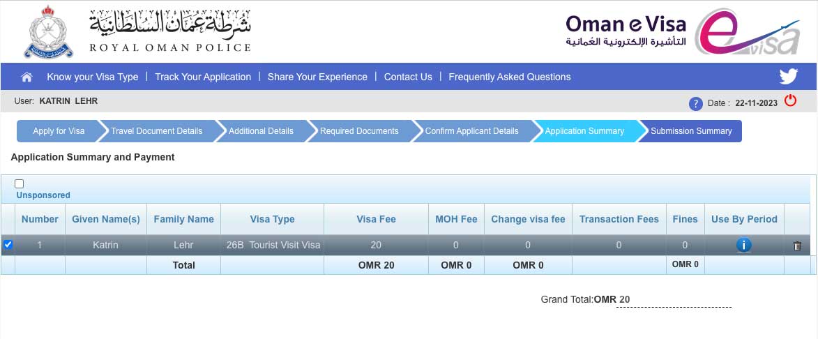 2. Schritt: Visum für Oman beantragen