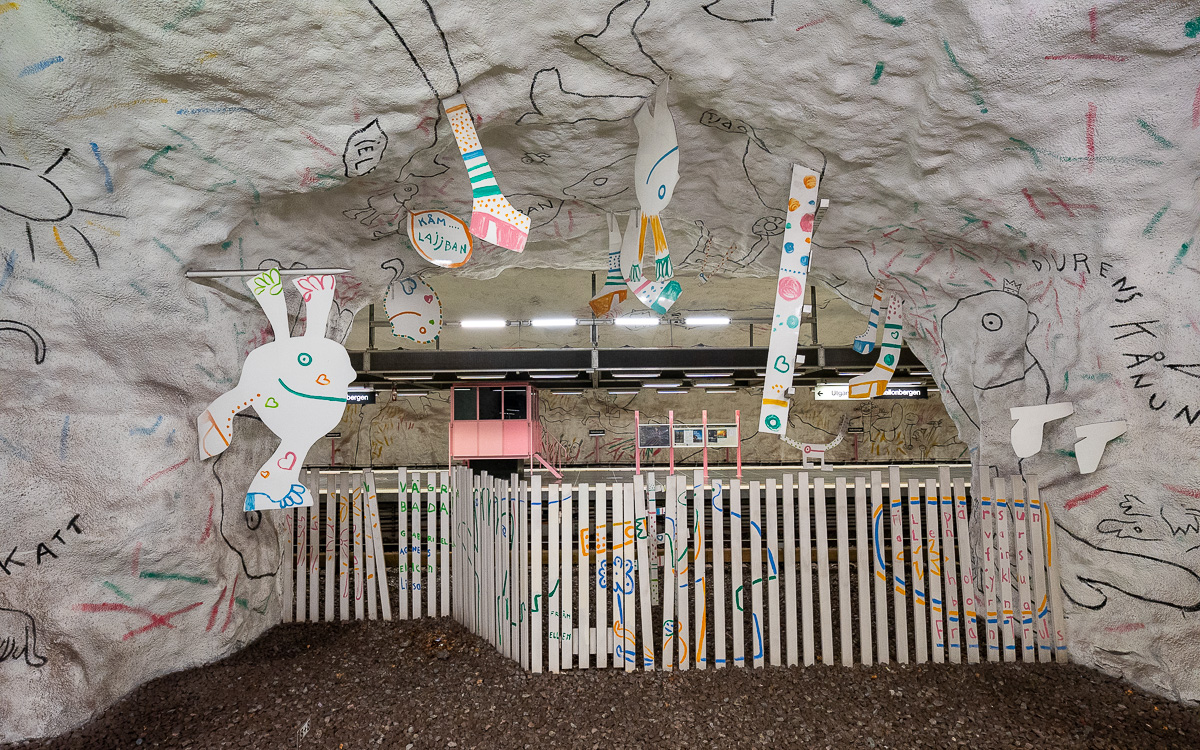 Diese Station gefällt mir, denn sie wurde komplett von Kindern gemalt. Die Künstler Elis Eriksson und Gösta Wallmark verwendeten dazu ihre eigenen Kinderzeichnungen sowie die, anderer Kinder.