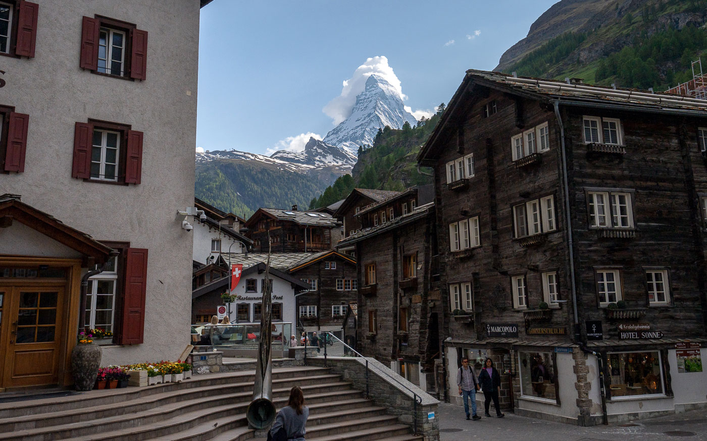 - Ausblicke aufs Matterhorn von der Kirchbrücke, am Kirchplatz