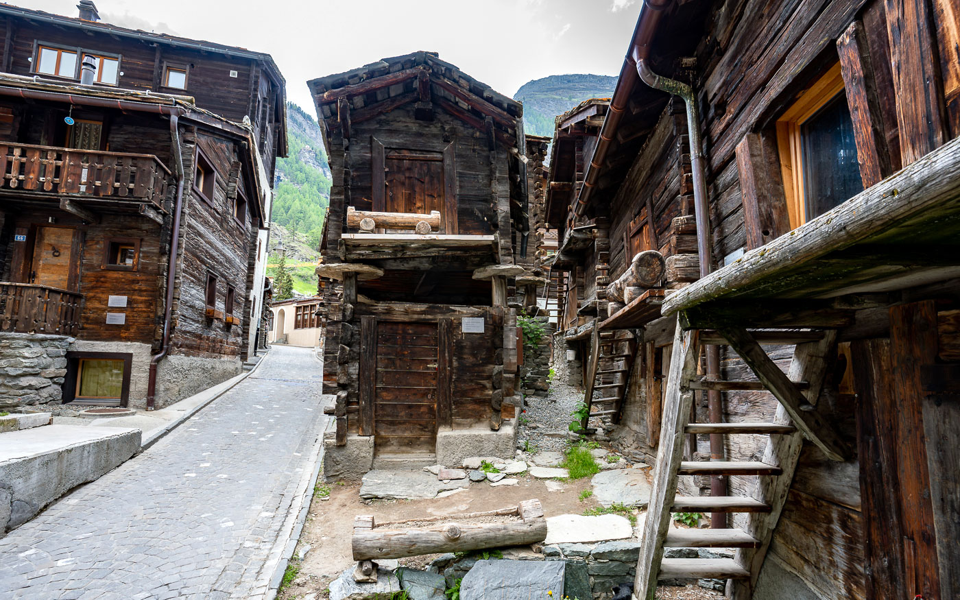 - Alter Dorfteil von Zermatt mit traditionellen Häusern auf Stelzen und Dachsteinplatten. Außerdem der Denkmalbrunnen von Ulrich Inderbinen, einer der bekanntesten Bergführer aus Zermatt. Mit 90 Jahren stand er zuletzt auf dem Matterhorn, eine tolle Leistung.