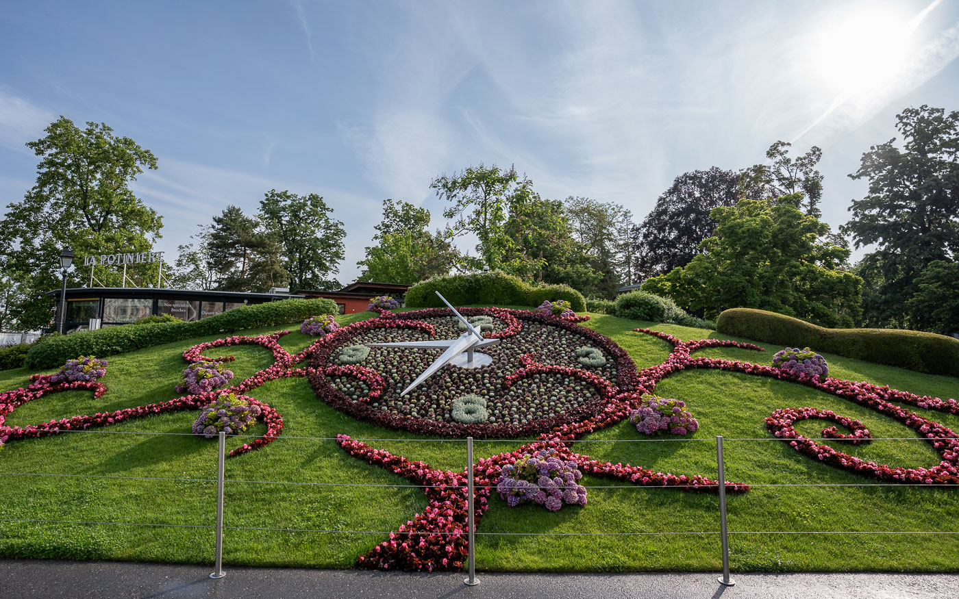 - Die Blumenuhr in Genf "L'Horloge Fleurie", ist ein farbenfrohes Wahrzeichen, welches auch noch gut riecht. Seit 1955 befindet sich diese im Englischen Garten und deutet natürlich auf die lange Tradition der Schweizer Uhrmacherkunst hin.