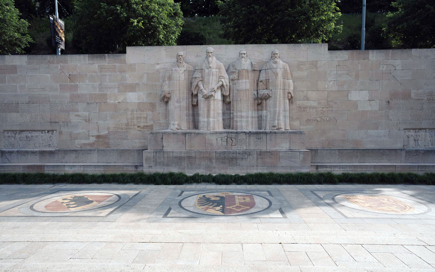 - Inmitten des Bastionsparks stehen die grossen Reformatoren Jean Calvin, Guillaume Farel, Théodore de Bèze und John Knox in Form von riesigen Statuen und Flachreliefs an der Reformationsmauer.