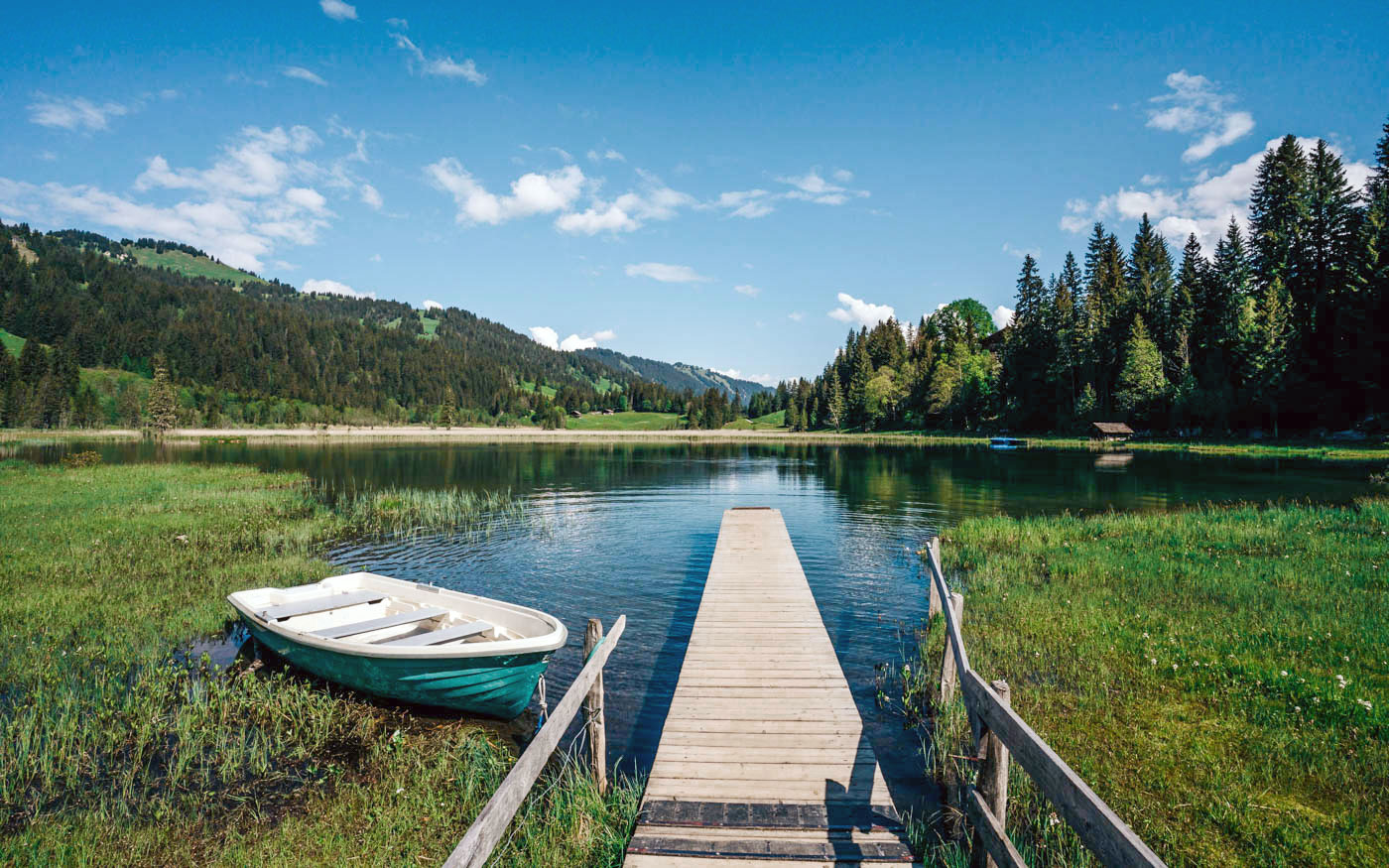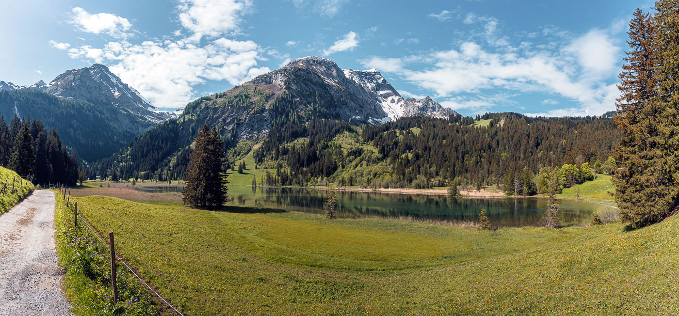 Zunächst betätigen wir uns und fahren zum Wanderparkplatz am Lauenensee. Hier beginnen wir unseren Spaziergang, der für jeden einfach machbar ist. Ich will es nicht Wanderung nennen. Du kannst hier sogar ein kleines Boot mieten, um auf einem Teil des Sees herumzupaddeln. Es gibt eine öffentliche Grillstelle, die an Wochenenden sicherlich gut frequentiert ist. Der Ausblick auf die umliegenden Berge ist fantastisch. Sehr gerne würden wir hier länger verweilen, um die ein oder andere Gipfelwanderung zu unternehmen. Tipps dazu findest du auf der Webseite des Tourismusportal Gstaad.