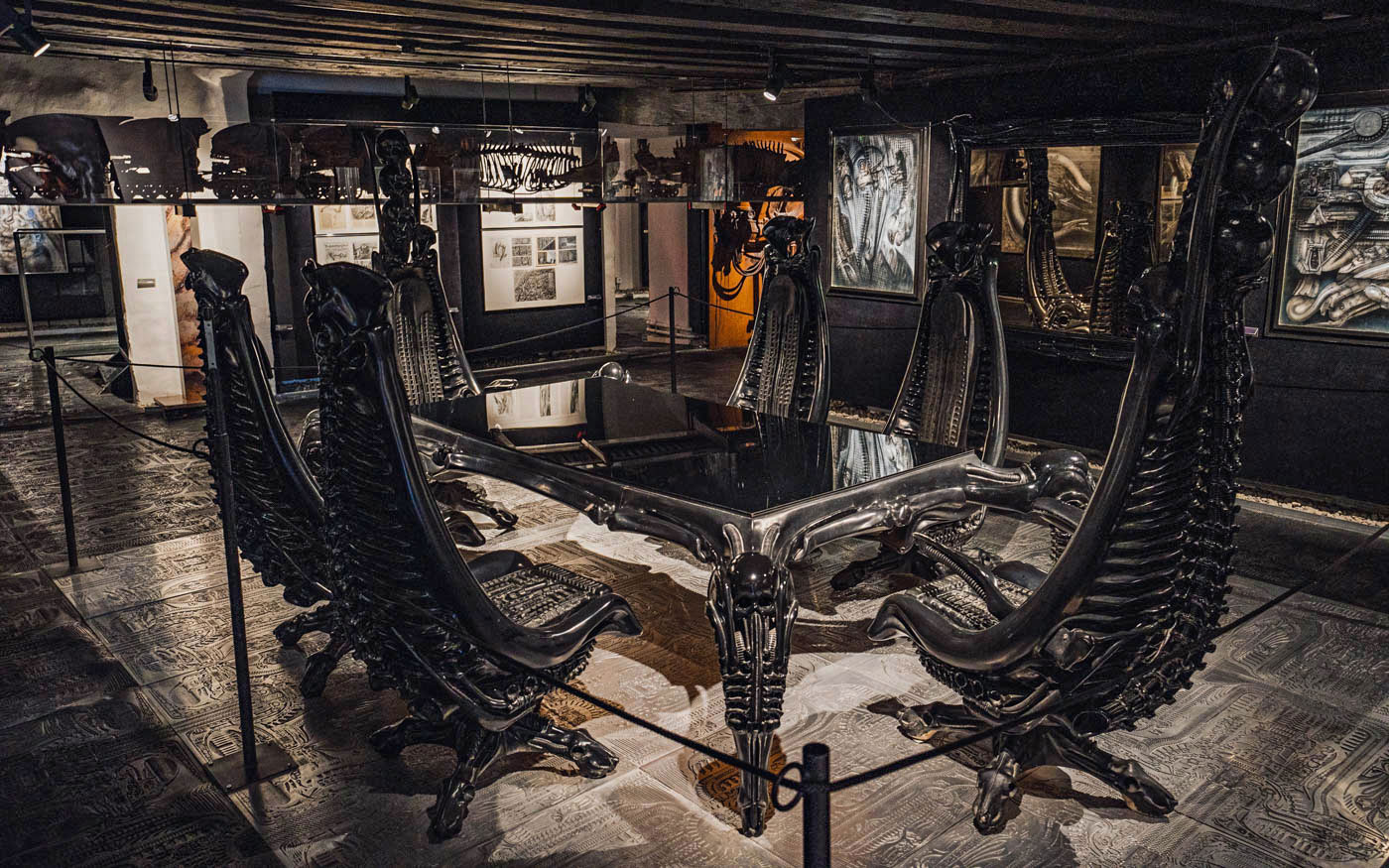 Hier findest du sämtliche seiner Kunstwerke. Vor allem Science Fiktion- und Aliens-Fans ist der Name ein Begriff. Alien ist eine von HR Giger erschaffene Figur. 1980 wurde HR Giger in Los Angeles der Oscar für die besten visuellen Effekte des Films Alien verliehen. Weitere bekannte filmischen Schöpfungen, Figuren und Sets sind beispielsweise Species, Dune, Poltergeist, Il und viele mehr. Mit diesem Museum hat HR Giger der Stadt Gruyère eine außergewöhnliche Bedeutung und Schönheit gegeben.