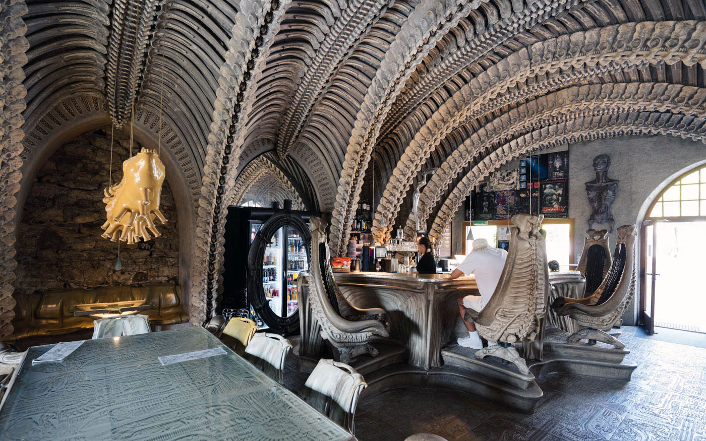 Das letzte seiner großartigen Werke ist die gegenüber dem Museums liegende gotische Bar, die uns laut Infos das Innere eines Körpers schildert. Die Decken und Wände sind von Skeletten (wie eine Wirbelsäule) gesäumt. Es ist wirklich abgefahren, ein Besuch der Bar zählt für uns zur Pflicht. Hinweis: Im Inneren darfst du nur fotografieren, wenn du Gast bist. Gönn dir eine Pause und nehme einen Drink an der Bar in den riesigen Stühlen ein.