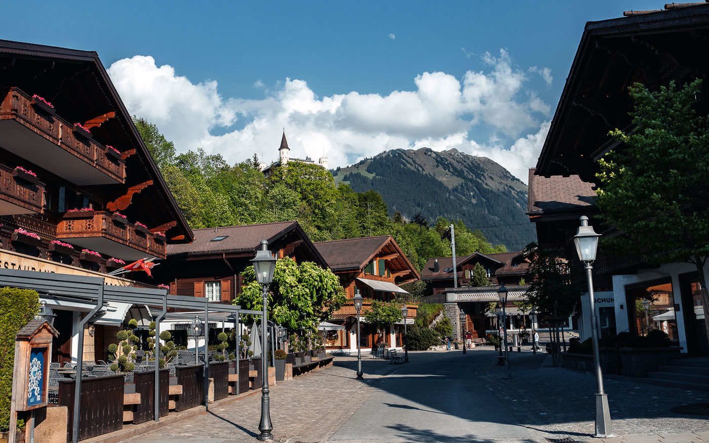 Das kleine Dorf Gstaad hat eine verkehrsberuhigte Promenade mit Luxus-Boutiquen. Von Louis Vuitton bis Prada ist alles vorhanden. Trotz dieser Läden hat der Ort einen ganz besonderen Charme. Durch den Chalet-Stil, der Pflicht bei der Bauweise ist, strahlt das kleine Zentrum viel Ruhe und Gemütlichkeit aus. Unser Hotel ist direkt im Zentrum, aber ruhig.
