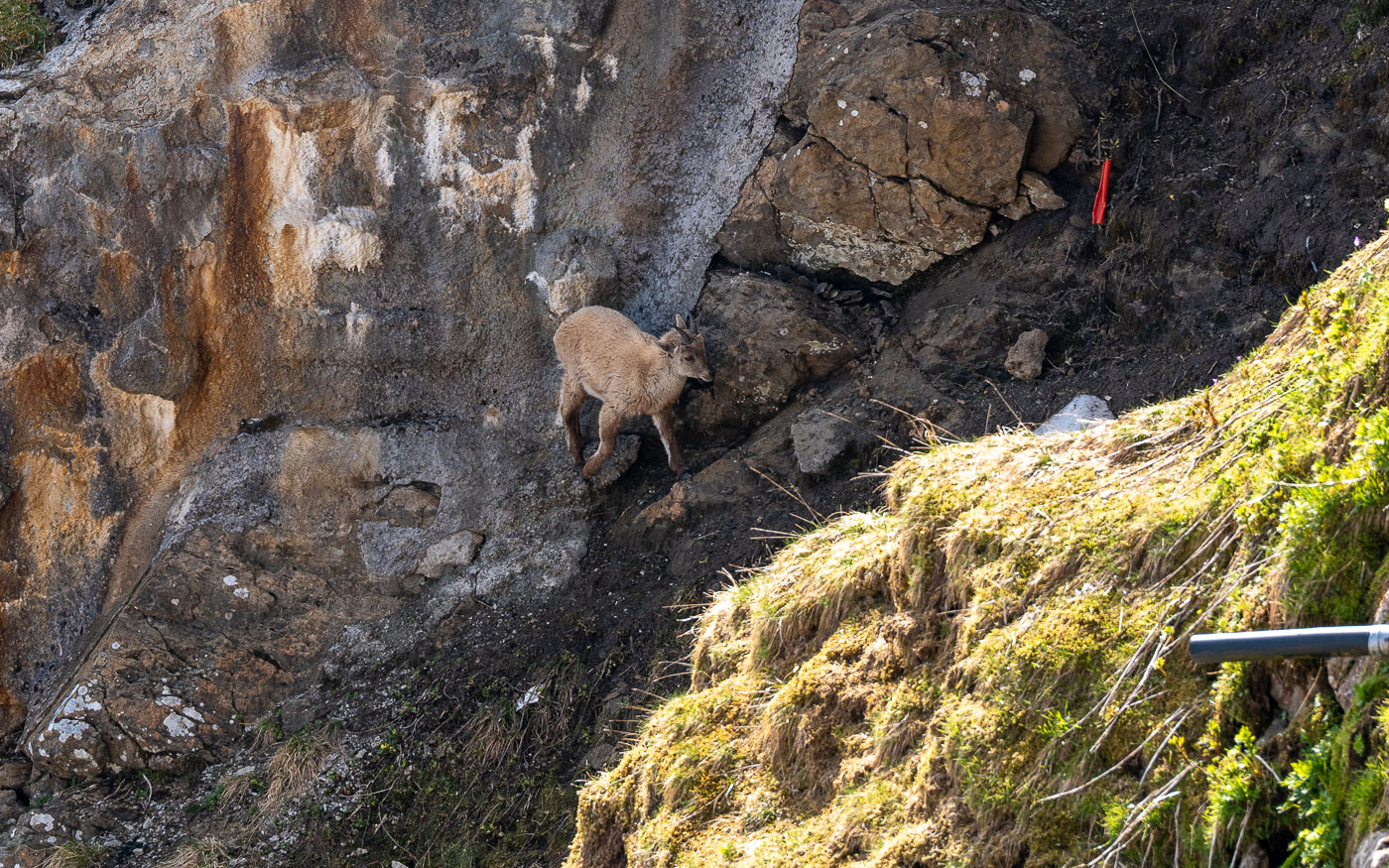 Löse dein Ticket für die Bergbahn, und besteige die Gondeln, um auf den Pilatus Kulm zu gelangen. Hier oben auf 2.132 Meter ist die Luft und Aussicht fantastisch. Wir gehen den Drachenweg entlang, und entdecken direkt beim Ausstieg einen kleinen Steinbock. Da der Blumenweg leider gesperrt ist (hier hast du die beste Chance auf Steinböcke), begnügen wir uns mit den Gipfeln Esel und Oberhaupt. Diese Wege sind für jeden gut machbar über Treppenstufen nach oben.