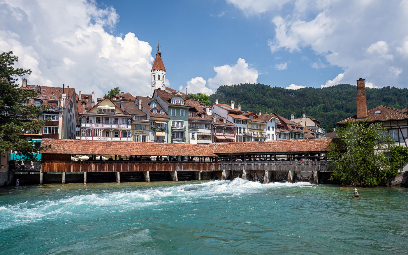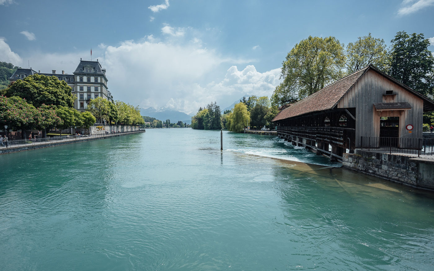 Für die malerische Stadt am westlichen Ende des Thunersee haben wir einen kurzen Zwischenstopp eingelplant. Das Thuner Schloss trohnt über der Altstadt, die umliegenden Schweizer Alpen sind von hier gut zu sehen.
