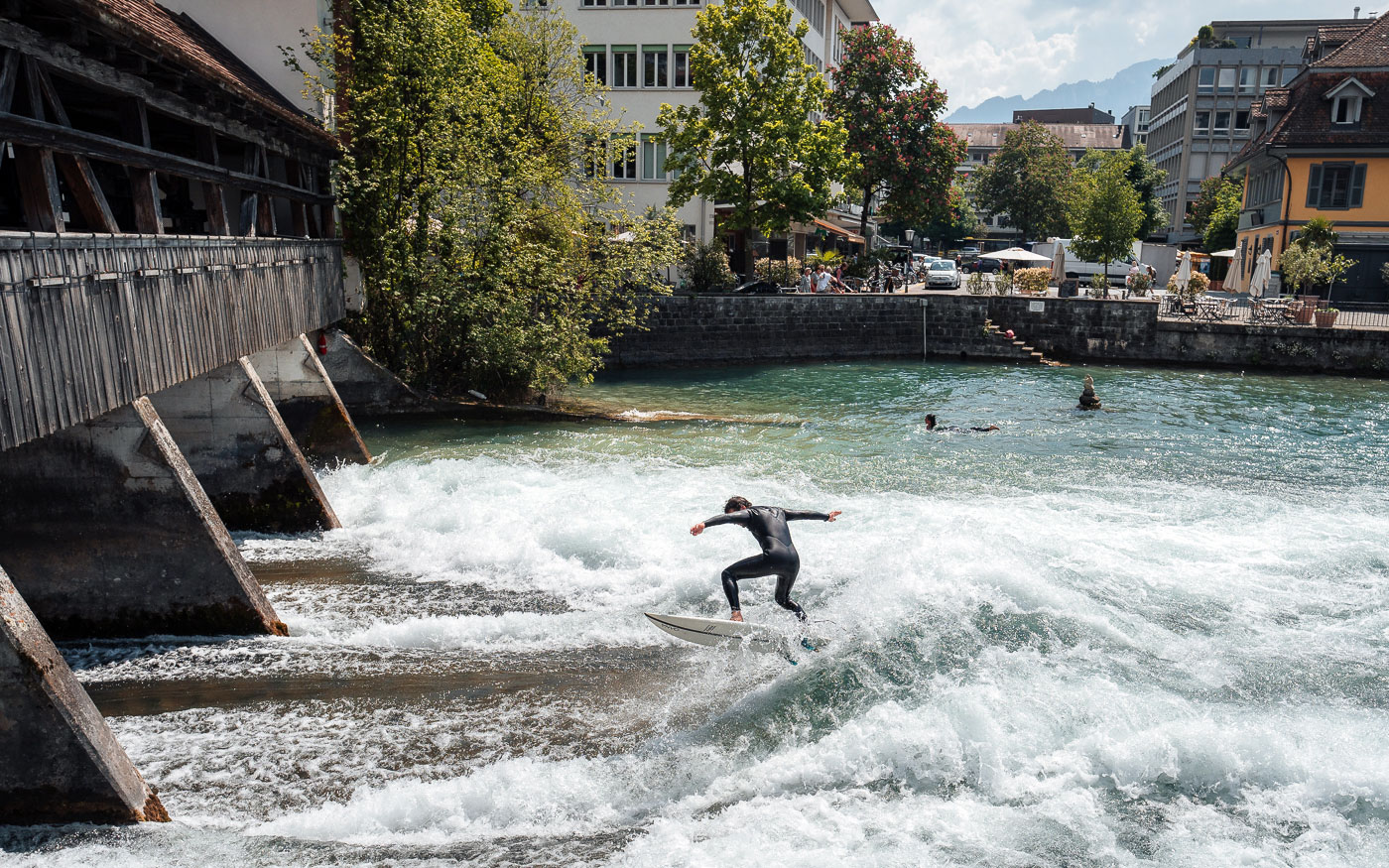 Außerdem gibt es an der wunderschönen Mühleschleuse eine Welle, auf der du Surfer auf der Aare beobachten kannst. Wir schlendern durch die Stadt, essen ein Eis und finden es hier (wie irgendwie alles in der Schweiz) wirklich toll.