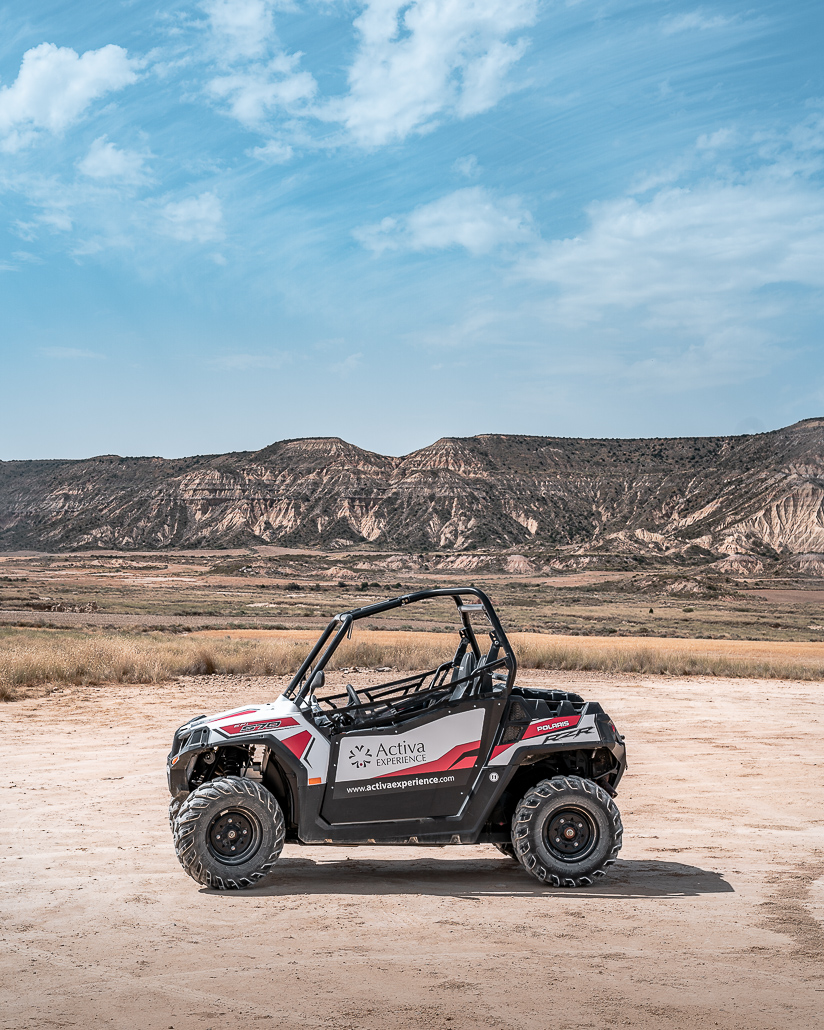 Da ein Teil der Bardenas Reales militärisches Sperrgebiet ist, darfst du die markierten Routen nicht verlassen. Du könntest auch mit dem eigenen Auto durch den Naturpark fahren, es kostet keinen Eintritt. Wir hatten allerdings viel Spaß mit den Buggies und konnten an mehreren Stops einiges über Entstehung der Formationen, Fauna und Natur erfahren.