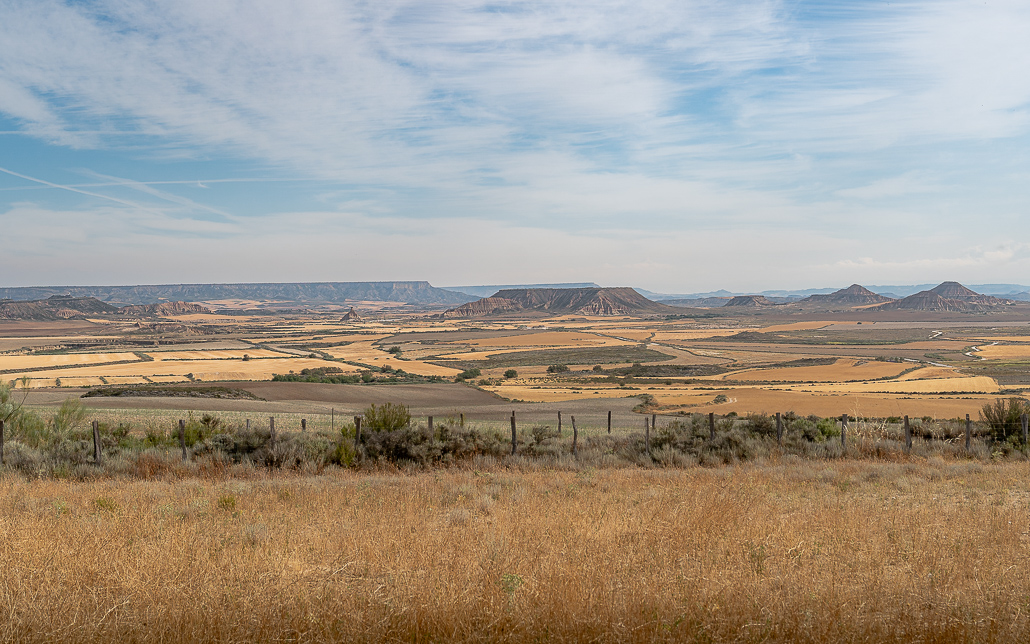 Der Naturpark wurde von der UNESCO zum Biosphärenreservat erklärt und zeigt uns hier eine völlig andere Landschaft als im bergigen grünen Norden von Navarra. In der 42.000 Hektar (entspricht ca. 50.000 Fußball Stadien) großen Halbwüste ist alles karg, die Vegetation spärlich und die vielen Flussläufe und Bäche sind die meiste Zeit des Jahres trocken.