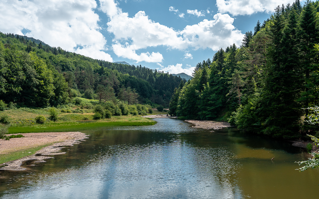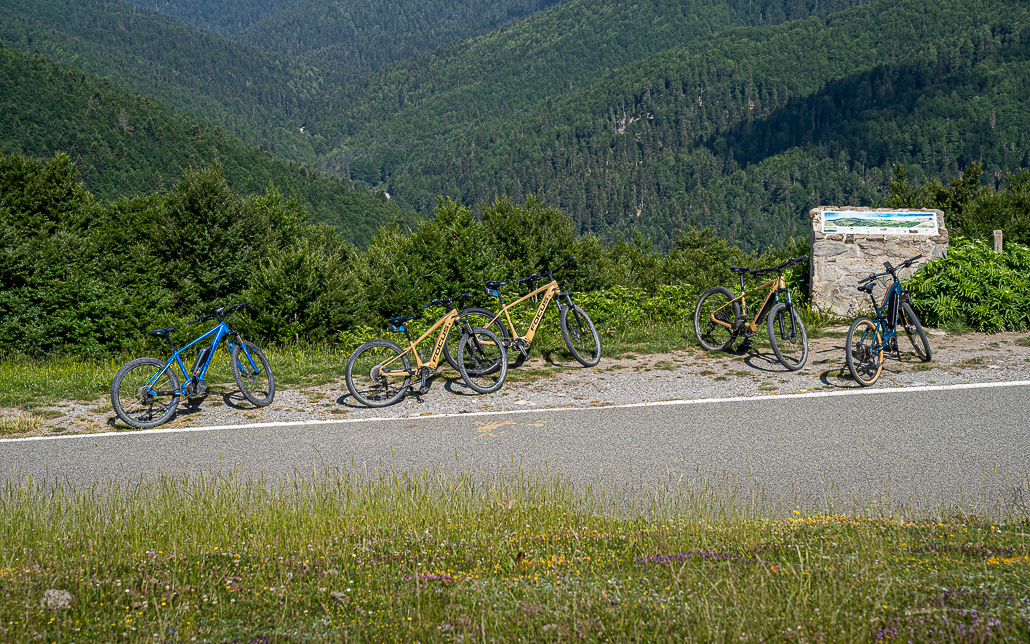 Wir verlassen Ochagavía und sehen mehr vom Valle de Salazar, dem Tal, in dem der wunderschöne Ort liegt. Denn das Salazar-Tal schmiegt sich nicht nur an die Spanischen Pyrenäen, sondern birgt auch den riesigen Irati-Wald (Selva de Irati), einer der größten und am besten erhaltenen Buchen-Tannenwälder Europas. Nachdem wir durch die Serpentinen hinauf fahren und Bergdörfer sowie Wiesen mit Kühen und Pferden passieren, erreichen wir das Irati-Abodi Mountain Center (Pikatua-Gebiet), um eine E-Mountainbike Tour auf Trails im Irati-Wald in unmittelbarer Nähe der Grenze zu Frankreich bis zu den Casas de Irati zu unternehmen.