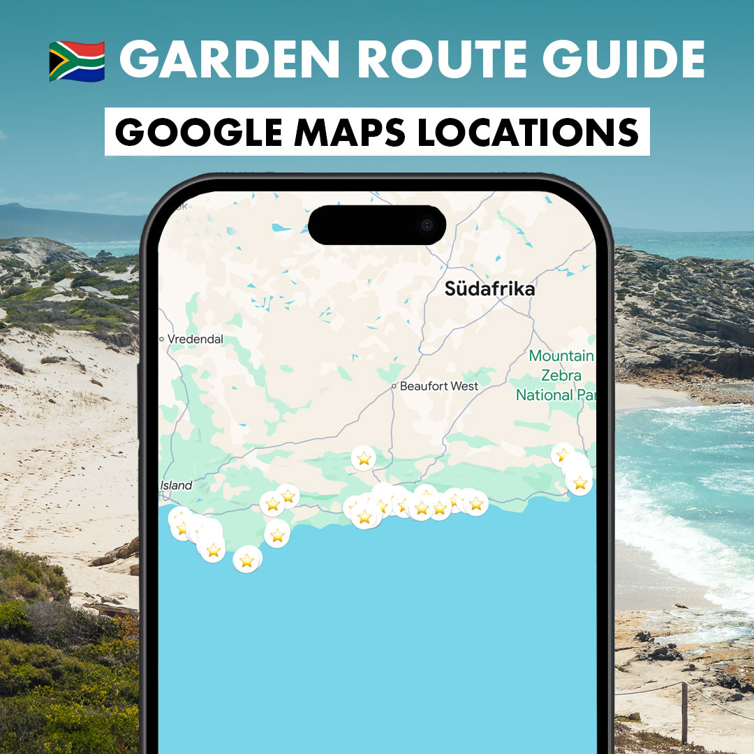 NEU: Unsere Garden Route Karten mit den schönsten Orten, Sehenswürdigkeiten und Food-Guide. Alle Ort mit einem Klick in Google Maps speichern spart viel Zeit. Dazu ergänzen wir in Notizen Tipps, damit du siehst, wo sich alle Orte befinden. Sieh dir den Garden Route-Guide fürs Handy hier an oder hier das Paket aus Kapstadt, Winelands und der Garden Route.