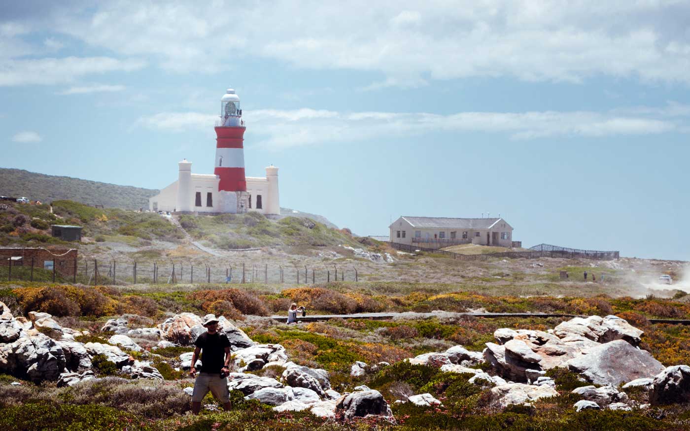 Der Kap-Agulhas-Leuchtturm befindet sich in der Nähe der Südspitze Afrikas, unmittelbar südwestlich der Stadt L'Agulhas, etwa 2,5 Stunden von Kapstadt mit dem Auto entfernt. Außen ist das Baujahr eingehämmert: A.D. – MDCCCXLVIII (1848).