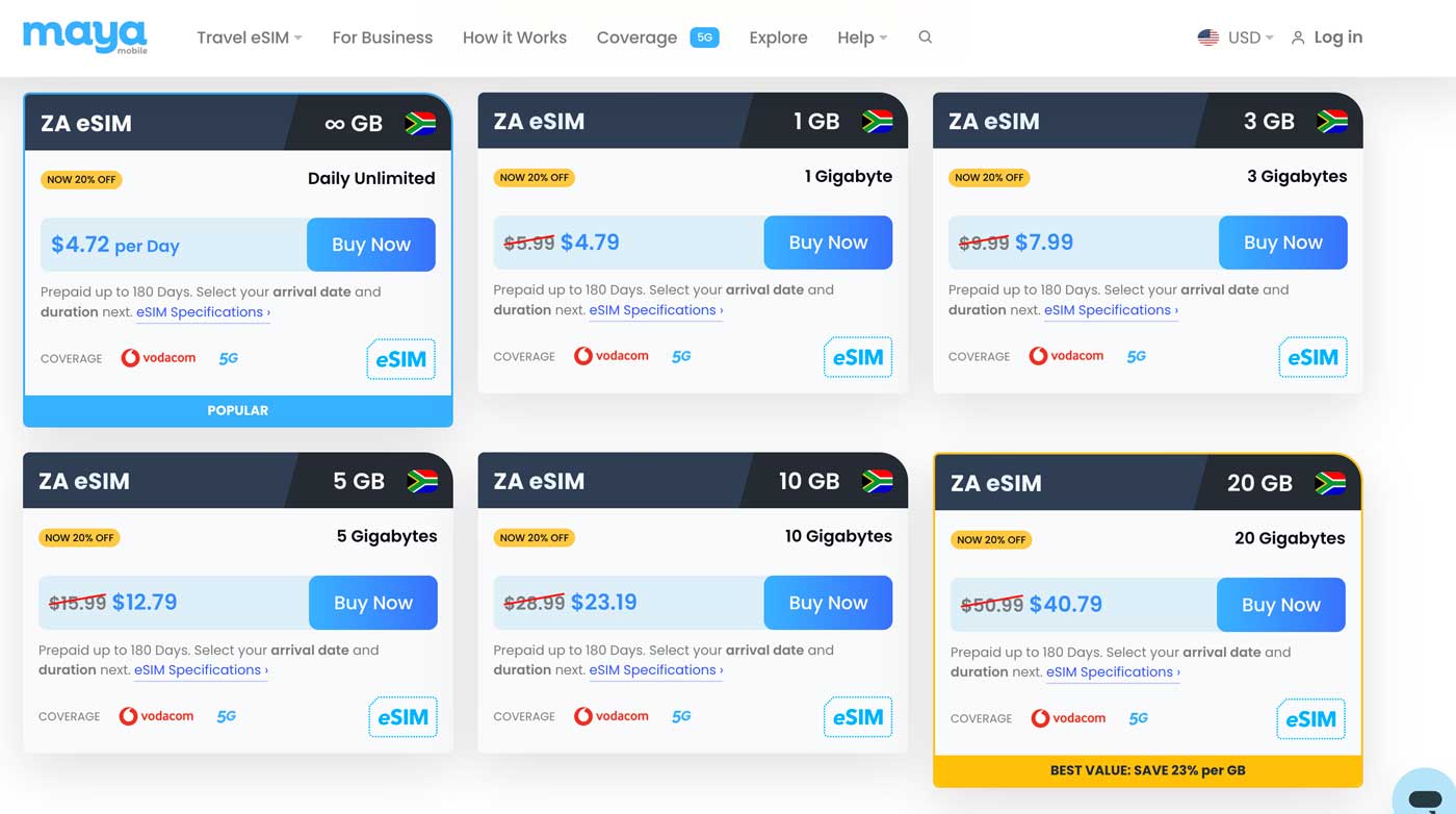 Für Südafrika vergleiche ich regelmäßig, da ich mindestens einmal im Jahr hier bin. Airalo heißt hier der günstigste Anbieter, den ich selbst mehrfach getestet habe und dir empfehlen kann.