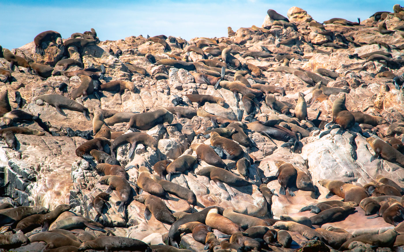 In Gaansbai werden auch Shark Cage Diving Touren angeboten. Das Hai-Mekka mit Touren in Käfigen, um weiße Haie zu sehen, ist populär. Der Ort nennt sich "Shark Alley" bei Dyer Island. Daher haben wir eben solches Boot bei unserer Öko-Tour gesehen. Leider wurden die weißen Haie mit Fischöl angefüttert, was alles andere als nachhaltig ist und keinem natürlichen Verhalten der Meerestiere entspricht.