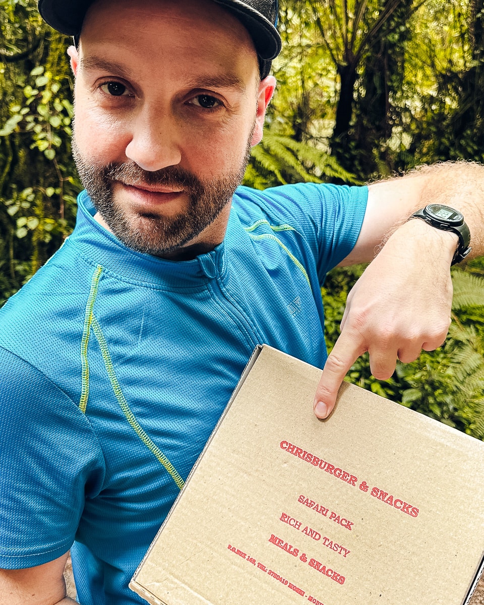 Zunächst geht es durch den Regenwald und den dichten Dschungel. Moos, Lianen und unglaublich viel grüne Vegetation ebnen uns den Weg zum Mittagessen mitten im Wald. Unser Essenspaket besteht heute aus einem kleinen Cheeseburger, einem Muffin, zwei kleinen Bananen, einem Apfel, etwas Hühnchen, Gebäck und einem Saft. Enorm üppig, aber uns wurde bereits auf der Fahrt gesagt: "Ihr müsst viel essen!"