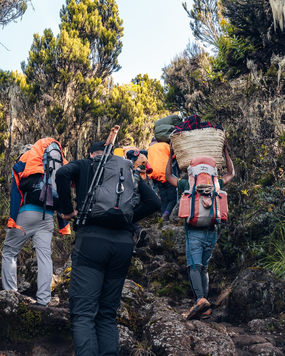 Ohne diese Träger, die jeden Tag 20 Kilogramm pro Person Richtung Gipfel schleppen, wäre das alles nicht möglich. Sie tragen neben deiner Tasche auch die Zelte, Stühle, einen Tisch, eine ganze Küche und Nahrungsmittel – also den ganzen Komfort und Luxus, der dir das Leben auf der Reise deutlich vereinfacht. Noch dazu gehen sie zusätzliche Wege, um frisches Wasser aus Flüssen zu besorgen. Die Tagesetappen meistern sie oft in einem Drittel der Zeit, die du dafür benötigst. Sie sind die echten Stars dieser Expedition und verdienen den größten Respekt.
