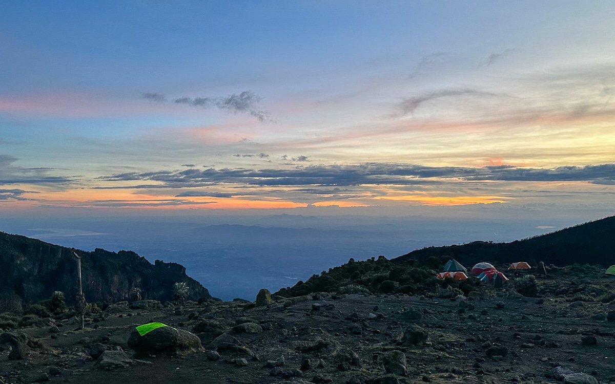 Ein letztes Mal Isomatte und Schlafsack ausrollen, ein letztes Mal den Sonnenuntergang über den Wolken sehen, ein letztes Mal Reis und Gemüseeintopf. Wir konnten es selbst kaum glauben, dass die Zeit bereits vorüber war – und schon gar nicht, dass wir noch am Morgen des gleichen Tages auf der Spitze des größten Bergs Afrikas standen!