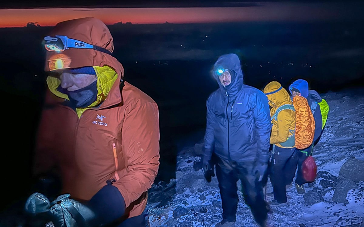 Irgendwann, es war noch mitten in der Nacht, drehte sich unser Guide Hans um und sprach die magischen Worte: „You now have reached the point of no return!” – von hier aus gab es kein Zurück mehr. Der Mann wusste, wie man motiviert.