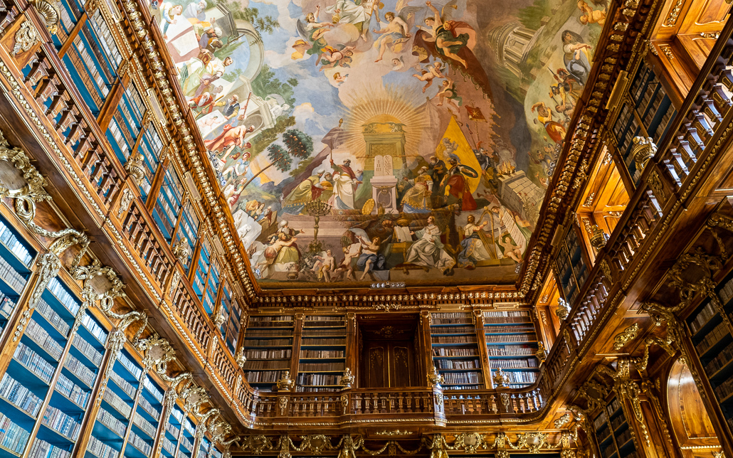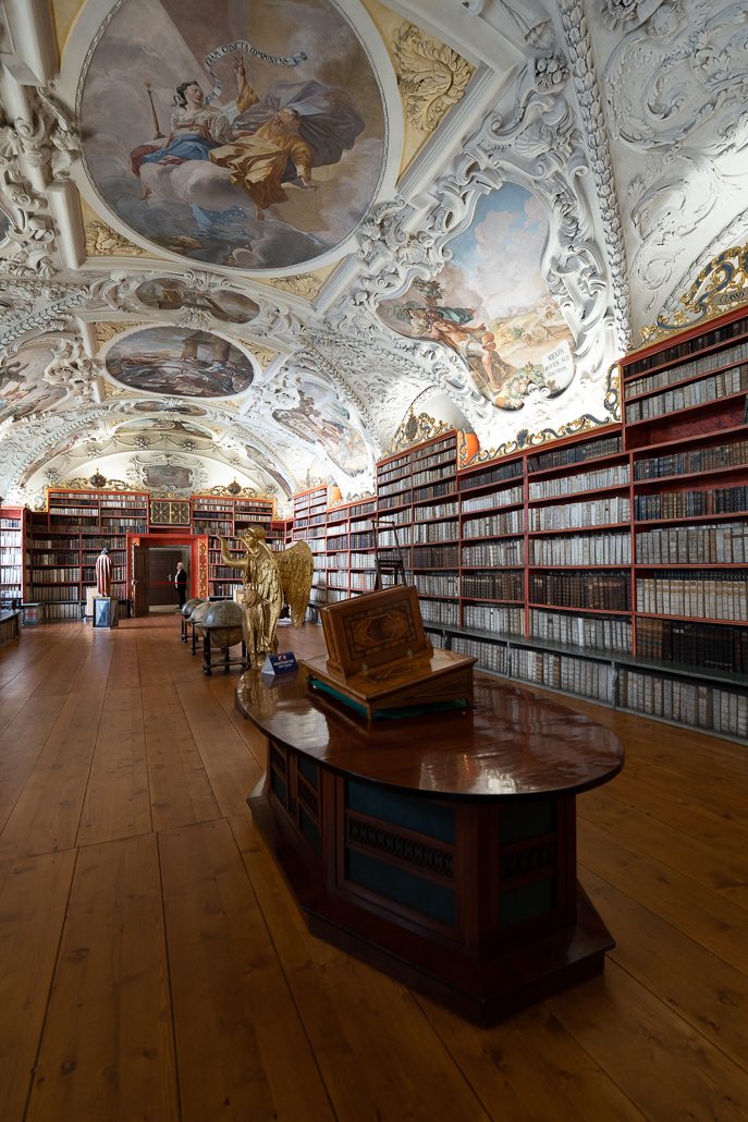 Mein Highlight in Prag war das Kloster Strahov, welches direkt neben unserem Hotel liegt. Das Prämonstratenser-Kloster wurde im Jahre 1140 gegründet. Die Bibliothek des Prämonstratenserklosters in Strahov ist mit rund 200.000 Bänden eine der wertvollsten und am besten erhaltenen historischen Bibliotheken in Europa. Die beeindruckenden Säle mit tollen Fresken und Deckenmalereien enthalten eine riesige Sammlung aus mittelalterlichen Handschriften, Landkarten, Stichen und Globen.
