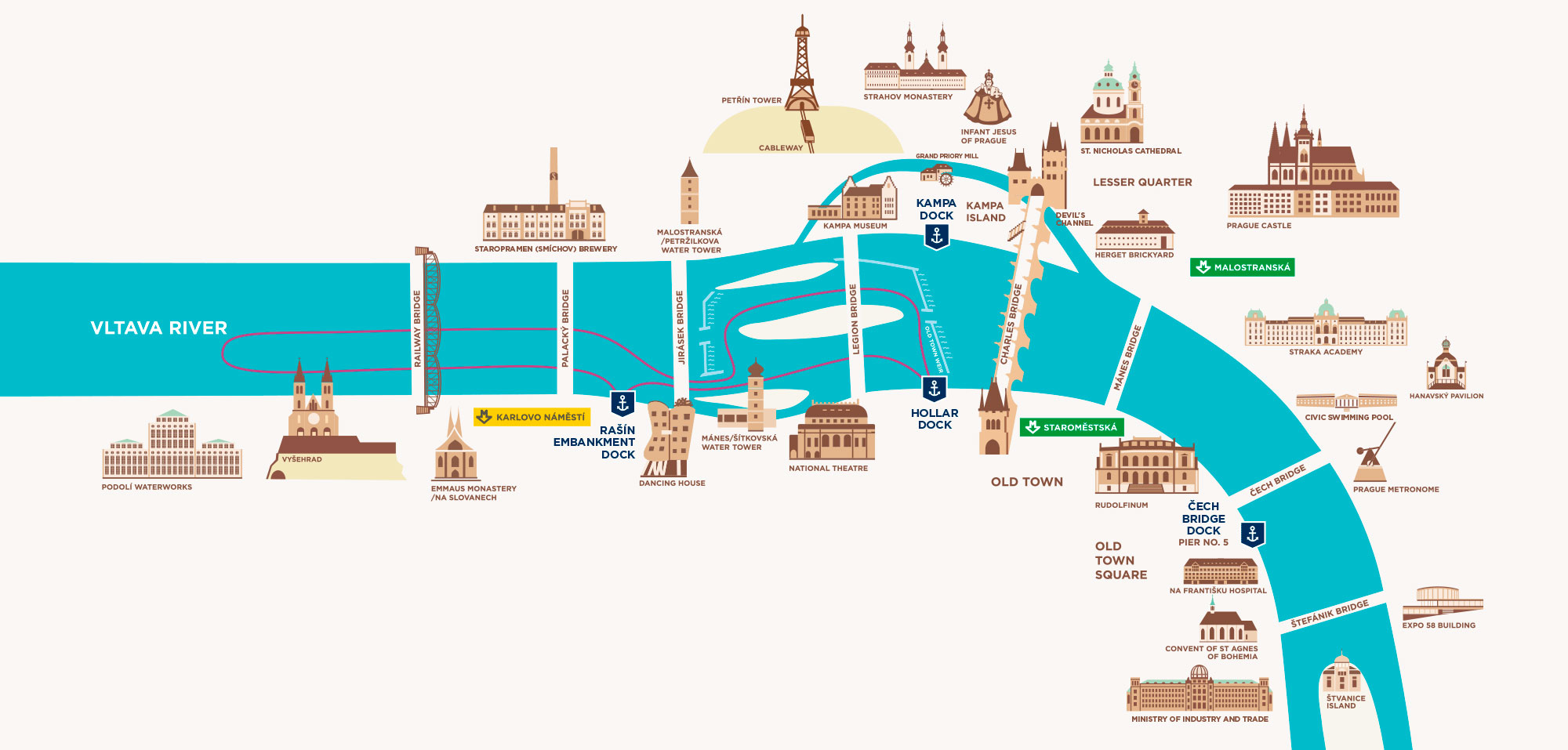 Es gibt in Prag mehrere Touren zur Auswahl. Wir haben die 1-stündige Tour ab dem Rašín-Kai unternommen. Du fährst dabei nicht unter der Karlsbrücke durch, sondern drehst schon weiter vorher wieder um. Die Alternative wäre eine 2-stündige Tour, die auf der anderen Seite der Karlsbrücke startet und dich auch unter der Brücke durchbringt (hier ansehen). Mir hat die 1-stündige Tour ausgereicht.