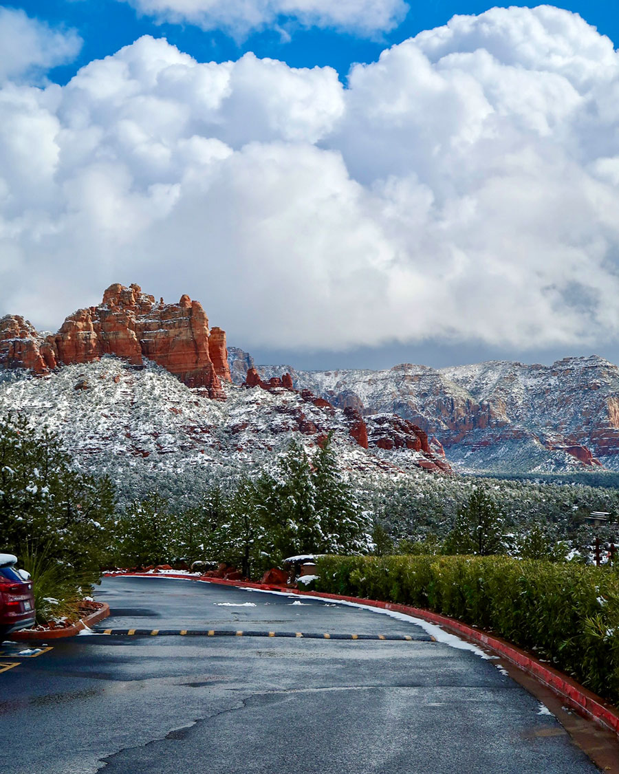 Regen und Schnee gibt es relativ wenig in Sedona - von den durchschnittlichen 11 Schneetagen pro Jahr habe ich bei meinem Besuch im Februar allerdings direkt zwei mitgenommen. Die roten Felsen bei Schnee sehen wunderschön aus!