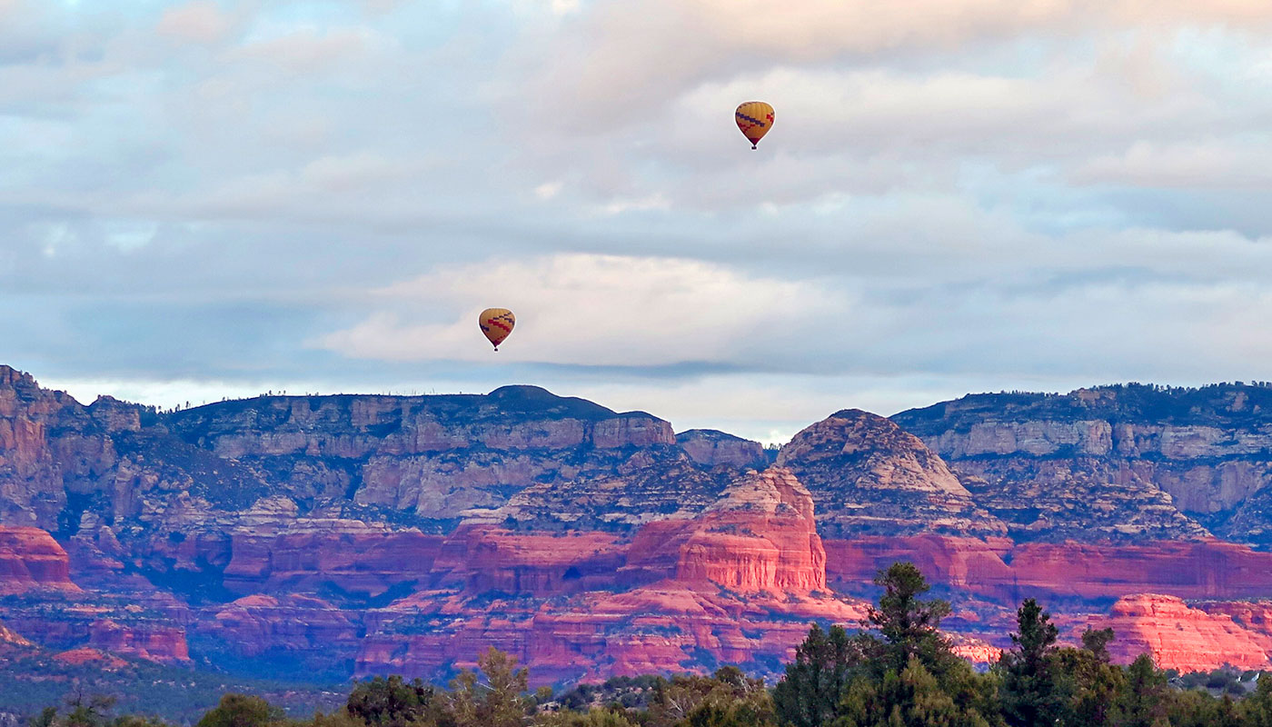 Aus dem Heißluftballon beobachten, wie die Sonne am Morgen aufgeht und sich dabei die Schatten auf den Sandsteinfelsen im aufgehenden Licht verändern? Sicherlich ein unglaublich eindrückliches Erlebnis und viel beworben in Sedona.