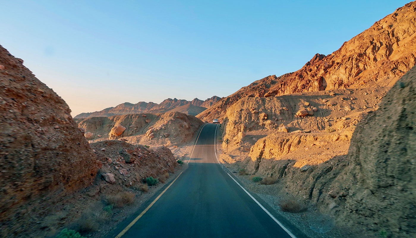 Reserviere dir im Vorfeld einen Mietwagen am Flughafen, dann kannst du direkt in dein Abenteuer starten. Das Death Valley kannst du grundsätzlich problemlos mit einem normalen Fahrzeug befahren, nur für manche Straßen in sehr abgelegene Regionen des Parks ist ein Geländewagen notwendig. Beachte aber, dass einige Straßen nur für Fahrzeuge unter 25 Fuß (ca. 7,62 Meter) zugelassen sind. Mit einem sehr großen Wohnmobil könntest du also Probleme bekommen.