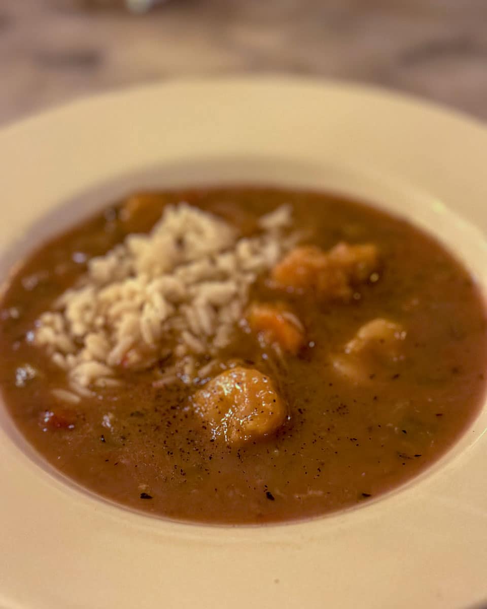 Wir bestellen natürlich Gumbo, die regelrecht vollgestopft ist mit Meeresfrüchten, Andouille-Wurststückchen und einer halben Krabbe (!). Der absolute Gumbo-König der Reise!