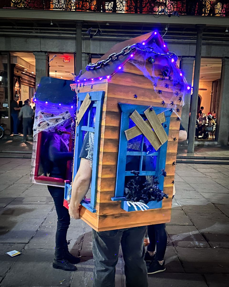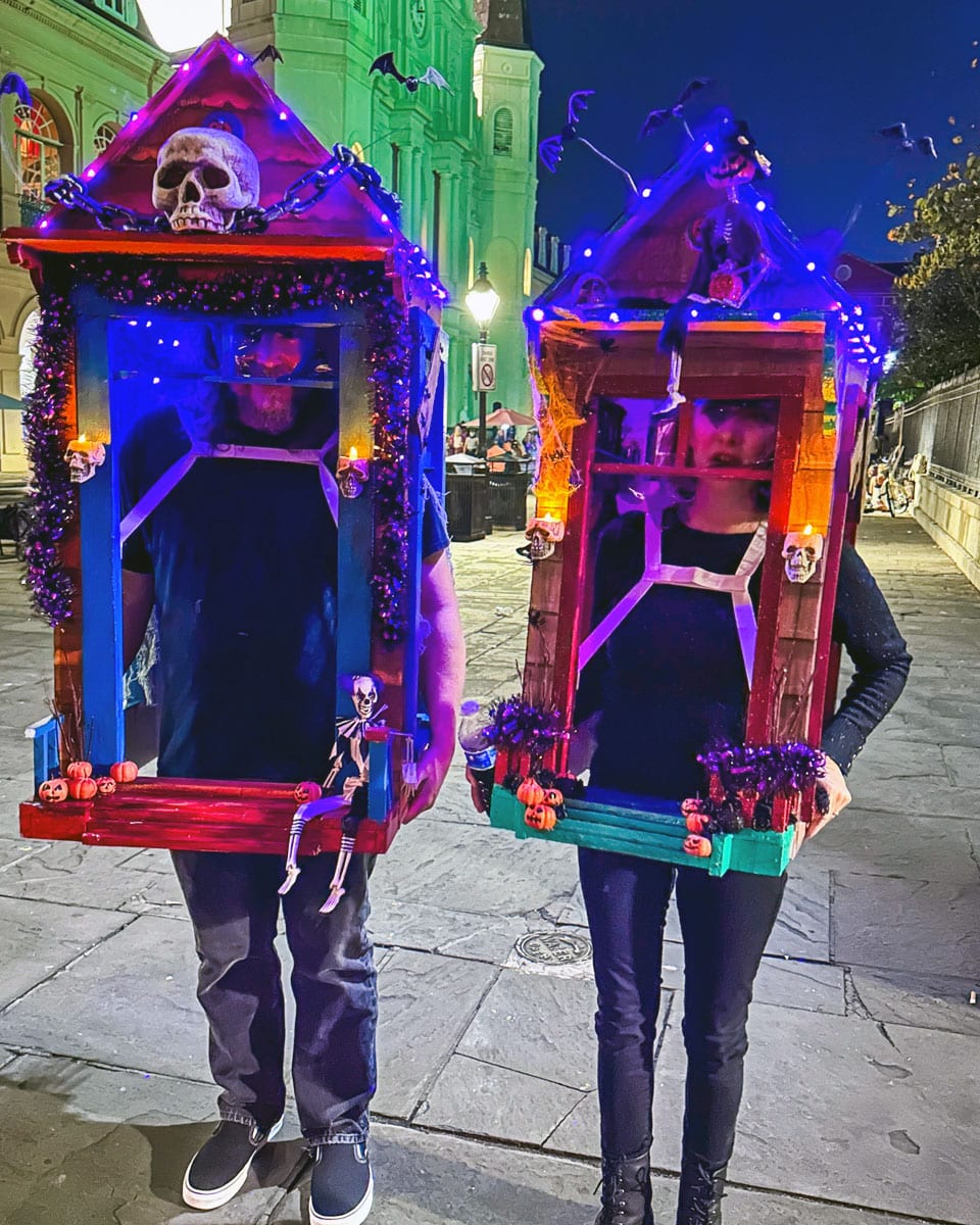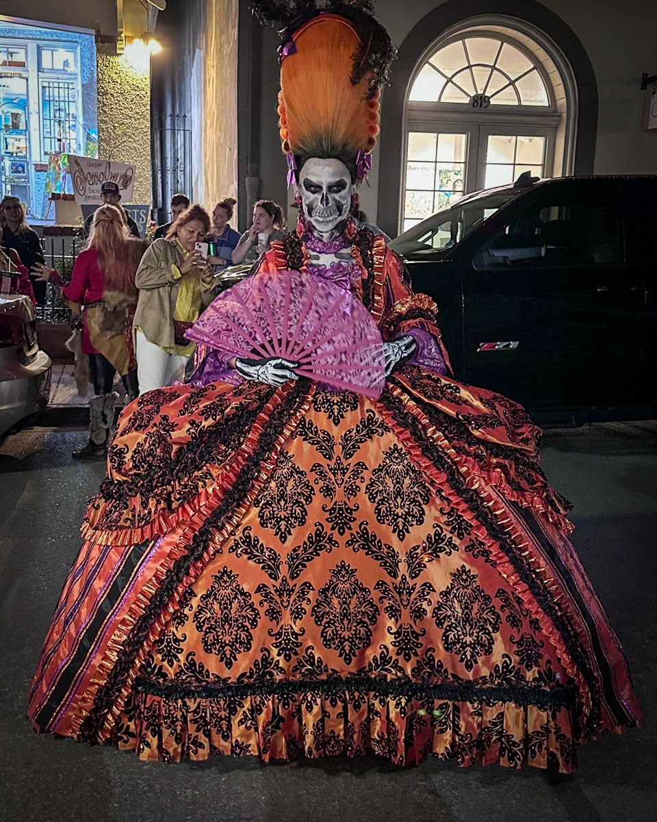 Jedes Haus und jede Veranda ist geschmückt mit Skeletten, Monstern, Geistern, Spinnen und allerlei Abgetrenntem. Wir müssen nicht erwähnen, dass wir außerdem von vielen Menschen in überaus originellen Kostümen umgeben sind: Von Freddie Krüger, Fred Feuerstein, Menschen in Häuser-Kostümen (!) bis über erstaunlich viele Jack Sparrows fühlt sich die Nacht inmitten der Bourbon Street – in der bis in die frühen Morgenstunden gefeiert wird – äußerst skurril an!
