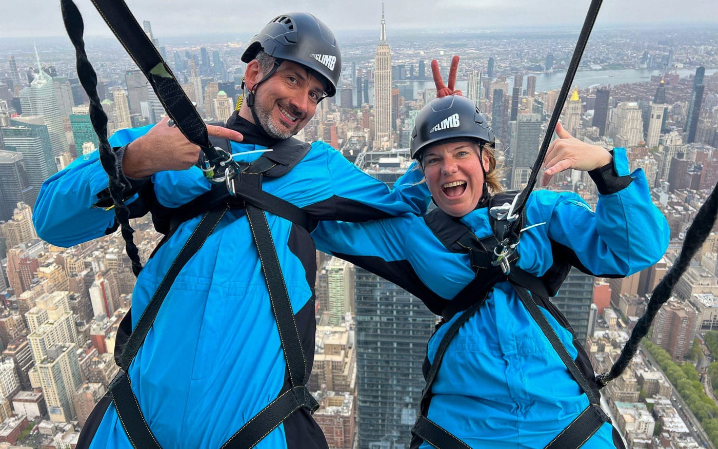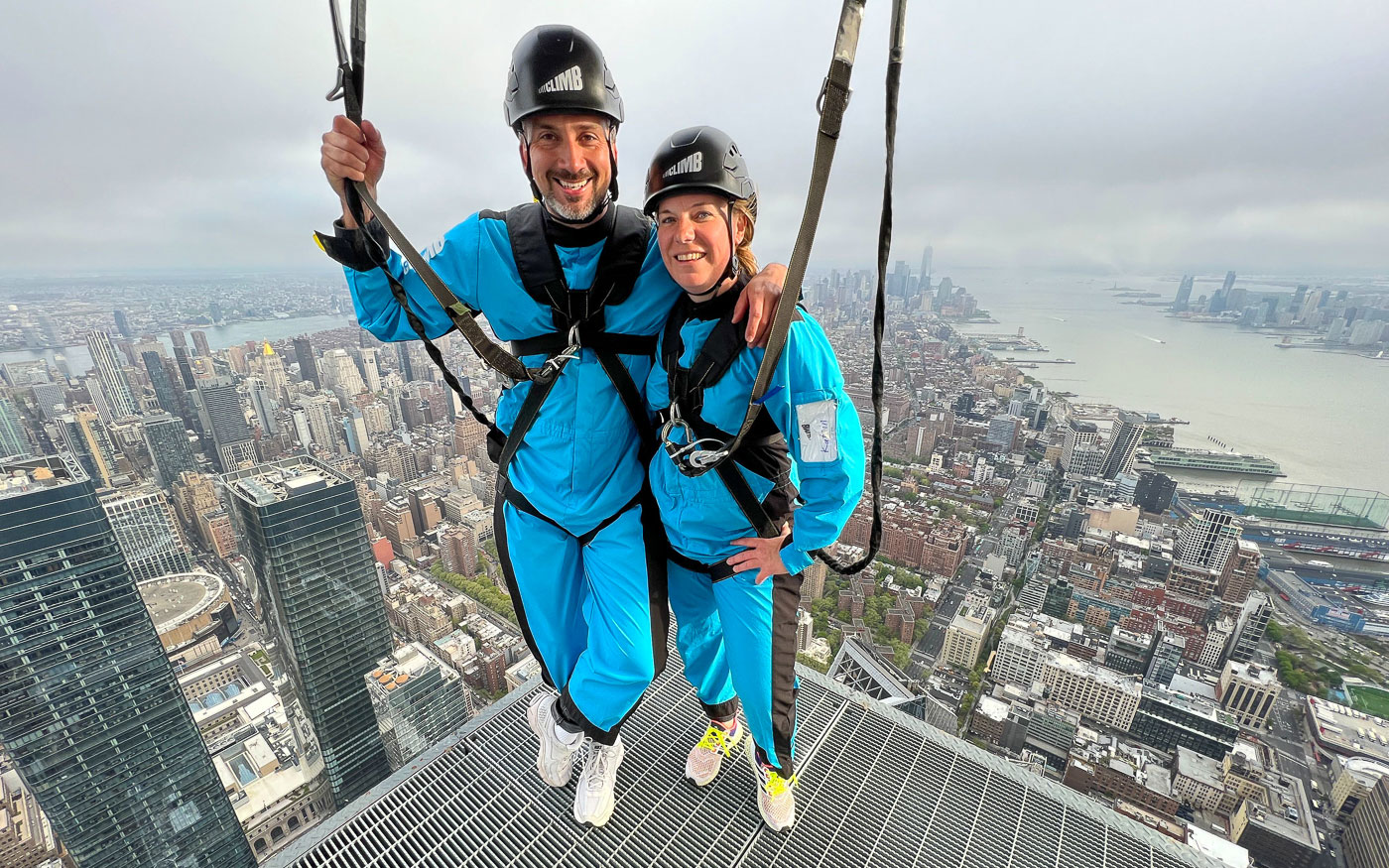 Beim City Climb steigst du an einem Klettergurt gesichert zunächst eine Treppe an der Seite des Gebäudes hinauf. Danach gelangt du auf eine kleine Plattform in einer Höhe von 365 Metern. An der Spitze des Wolkenkratzers in Hudson Yards lehnst du dich über die Kante "über die Edge" und siehst New York City wirklich von ganz oben.