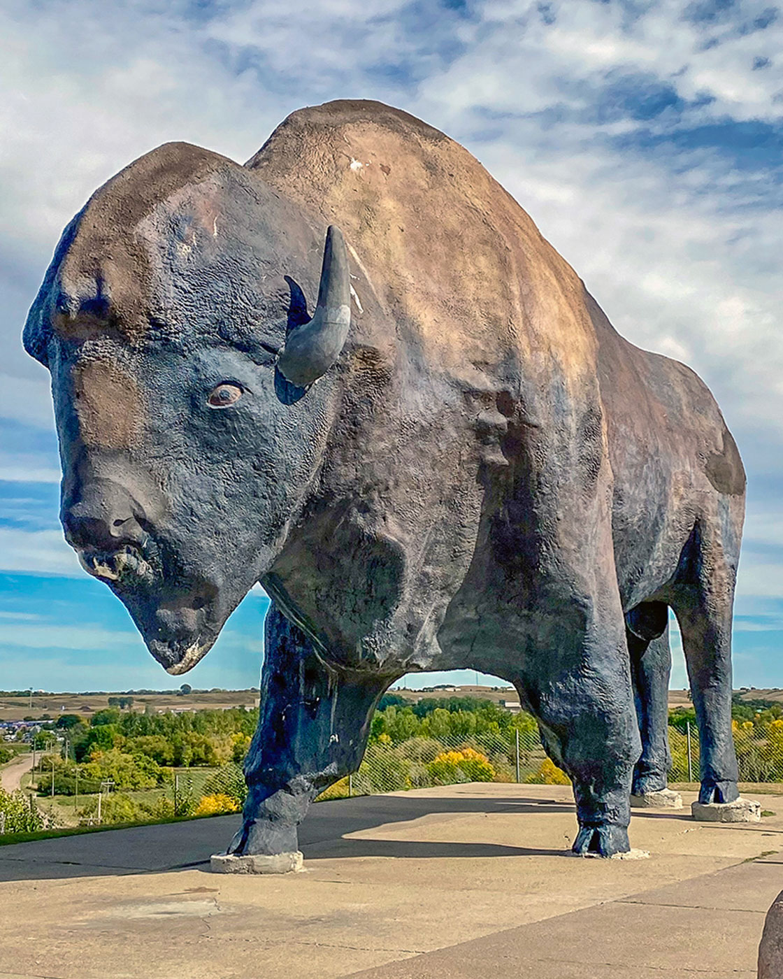 Entlang der Route 94 gen Westen liegt das kleine Örtchen Jamestown. Was es so besonders macht? Bisons! Du findest hier die größte Darstellung eines Amerikanischen Bisons - immerhin fast 8 Meter groß.