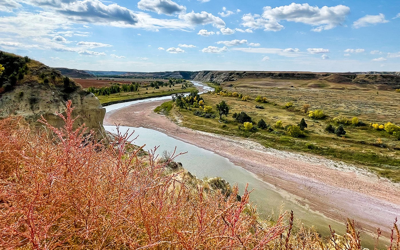 - Von oberhalb eines Canyons hast du einen fantastischen Blick auf den Little Missouri Fluss, der sich unter dir entlang schlängelt. Sehr empfehlenswert zum Sonnenuntergang.