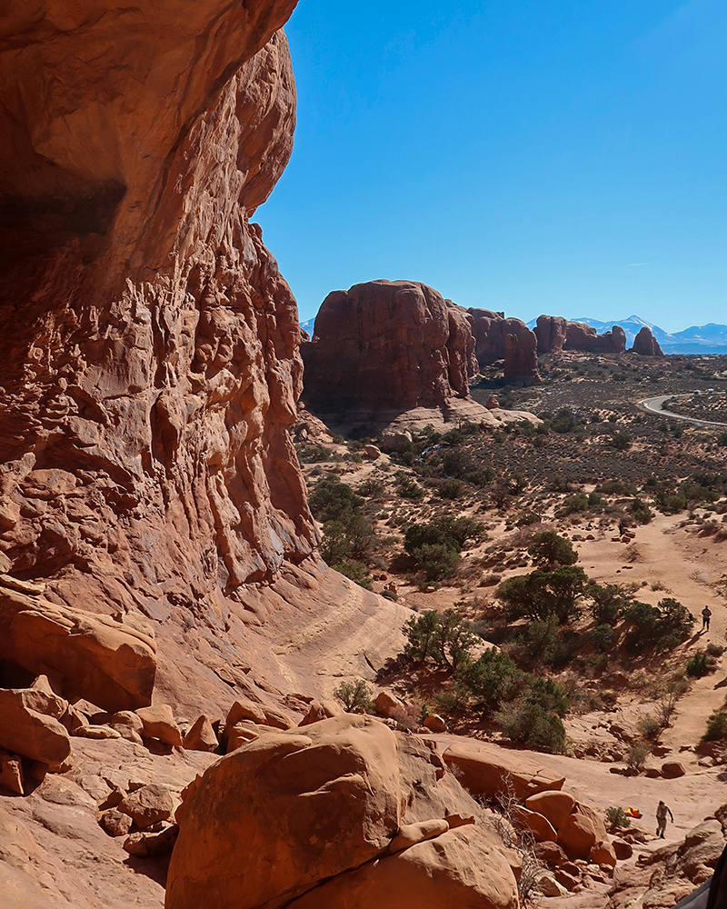 Da der Arches Nationalpark sehr nah an der quirligen Outdoor-Stadt Moab liegt, kannst du hier perfekt für ein paar Tage deine Basis aufschlagen und Ausflüge in die nähere Umgebung unternehmen. Nachdem ich zuvor lange in der Einsamkeit Utahs unterwegs war, habe ich es genossen, mich mal wieder eine Weile in einer Kleinstadt aufzuhalten und die Gegend zu erkunden. Lange Wanderungen gewünscht, auf der Suche nach Felsmalereien der Ureinwohner oder doch eher etwas Offroad-Abenteuer gefällig? Die Möglichkeiten sind vielseitig!