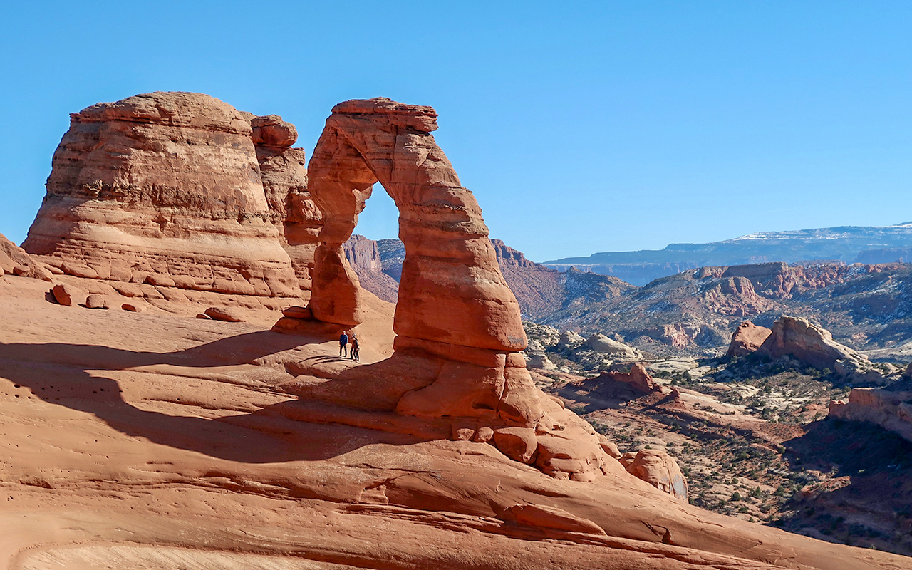 - Delicate Arch: knappe 2 Stunden brauchst du für diese beliebte Wanderung zu Utah’s Markenzeichen, aber es lohnt sich wirklich. Inmitten auf einem Felsplateau steht der Bogen ganz für sich alleine und trotzt der Landschaft.