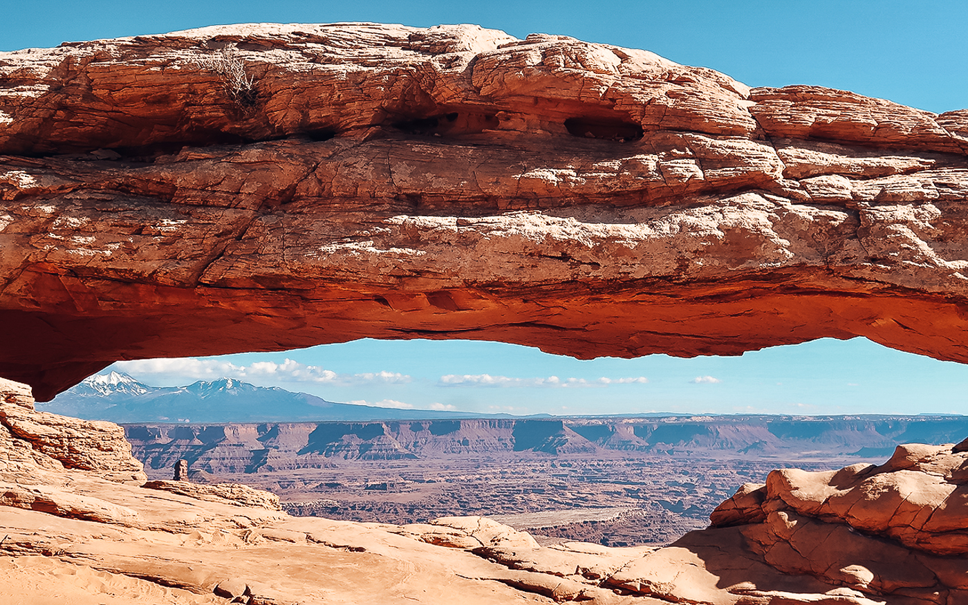Der kürzeste und beliebteste Trail im Canyonlands Nationalpark ist zugleich einer der schönsten. Du gelangst zu einer Felsbrücke, die den perfekten Fotorahmen für die dahinter liegende Bergkulisse bietet. Persönlicher Tipp: vorwiegend zum Sonnenaufgang eindrücklich, wenn die Sonne langsam über die Felsklippe hereinbricht.