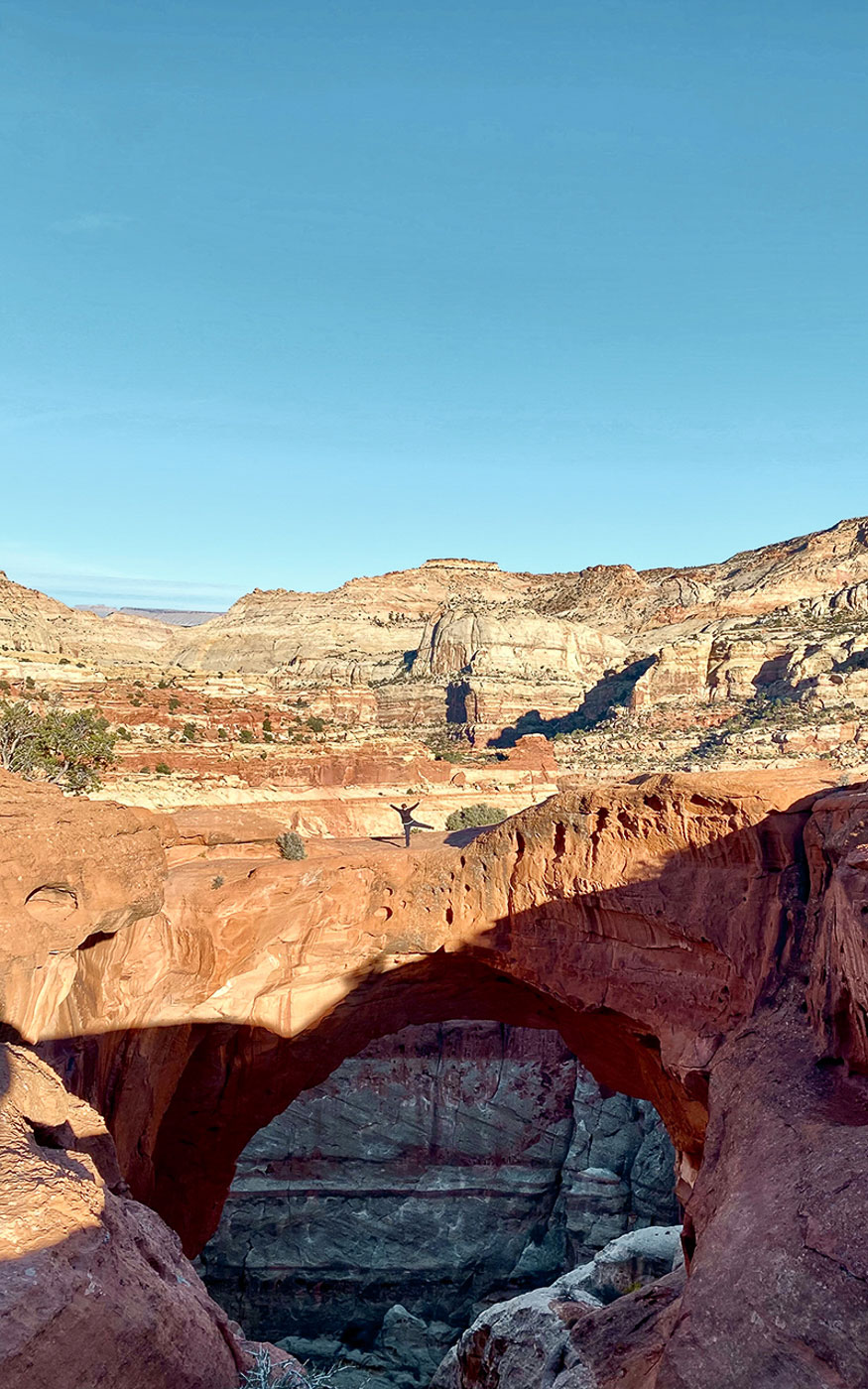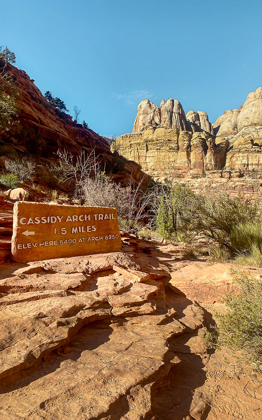 - Den Cassidy Arch Trail: knappe 5 km musst du hin und zurück hinter dich bringen, aber du wirst sie lieben, denn du kletterst hinauf und hast tolle Blicke auf den Canyon und den Nationalpark. Am Ende wirst du mit einem tollen Felsbogen belohnt, auf den du dich sogar hinauf stellen kannst. Was für ein Fotomotiv! Wenn du nur eine Wanderung im Park unternehmen möchtest, dann rate ich dir zu dieser - es ist die beliebteste im Nationalpark und dennoch ist sie nicht überlaufen.